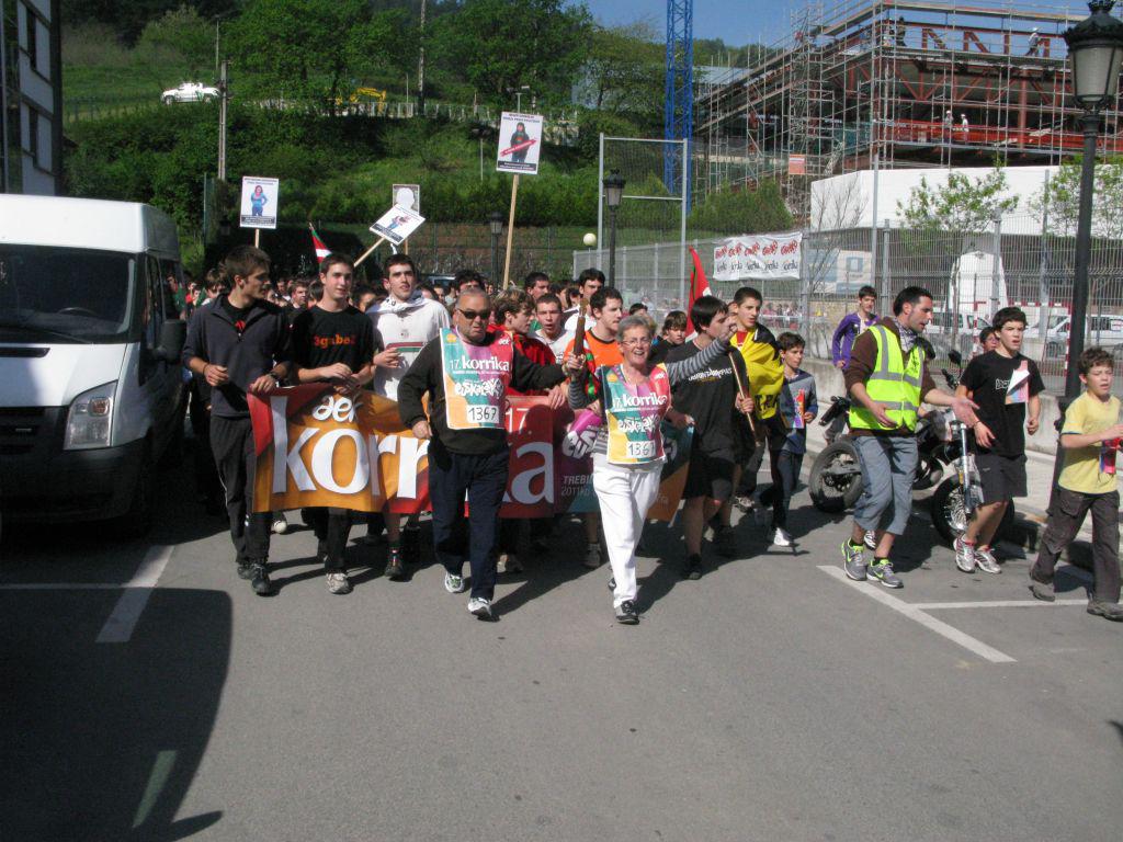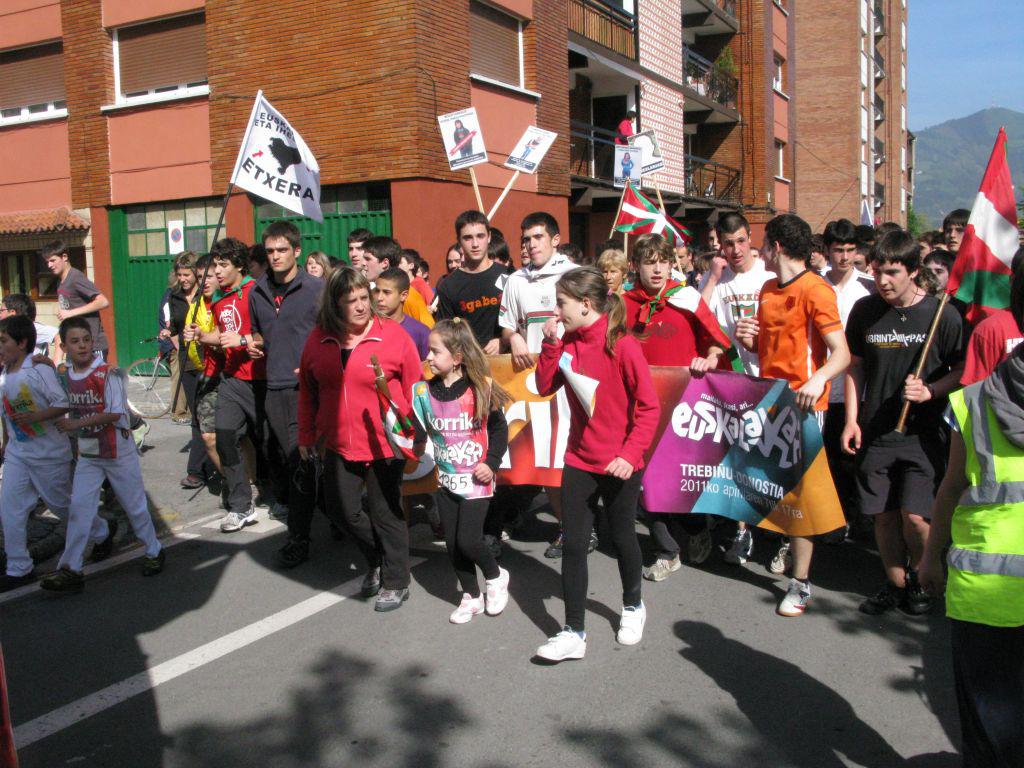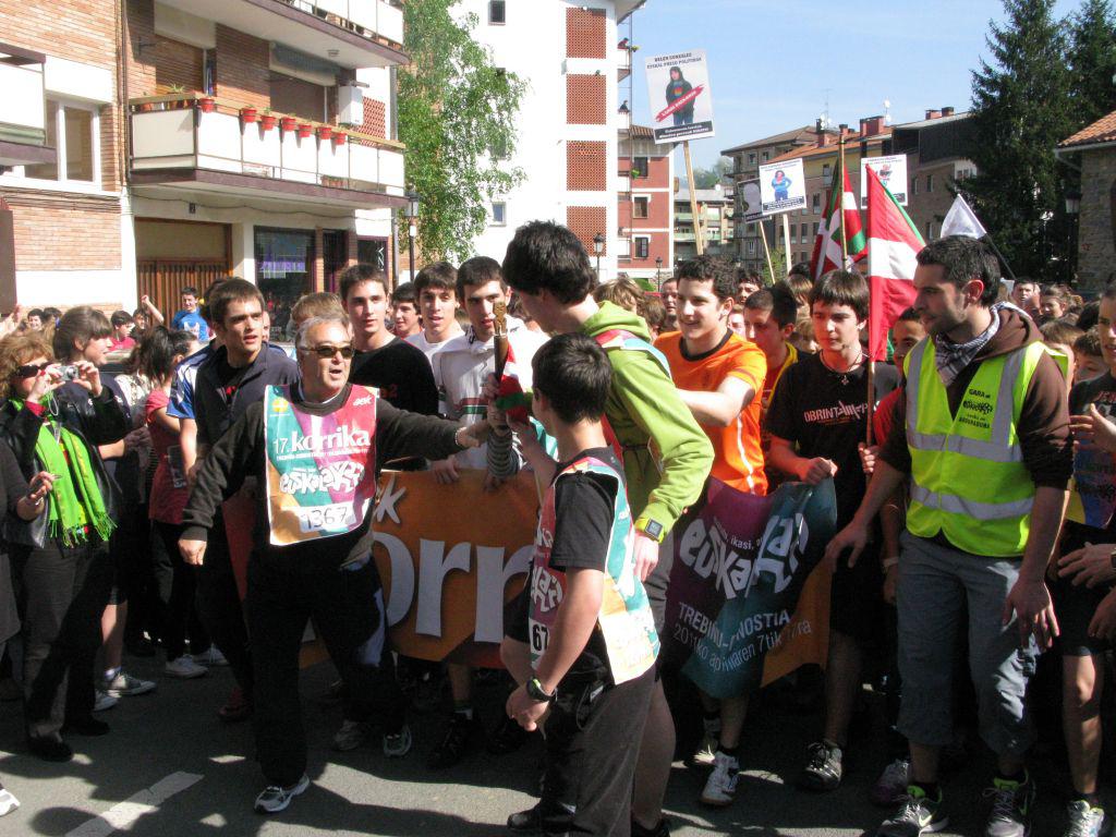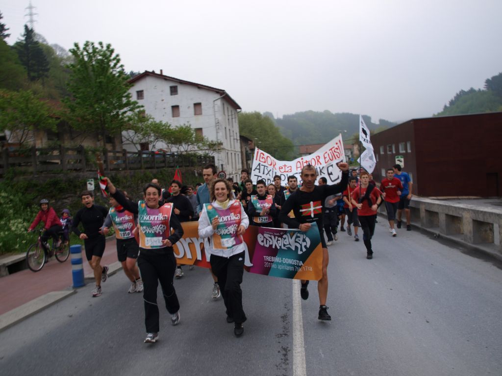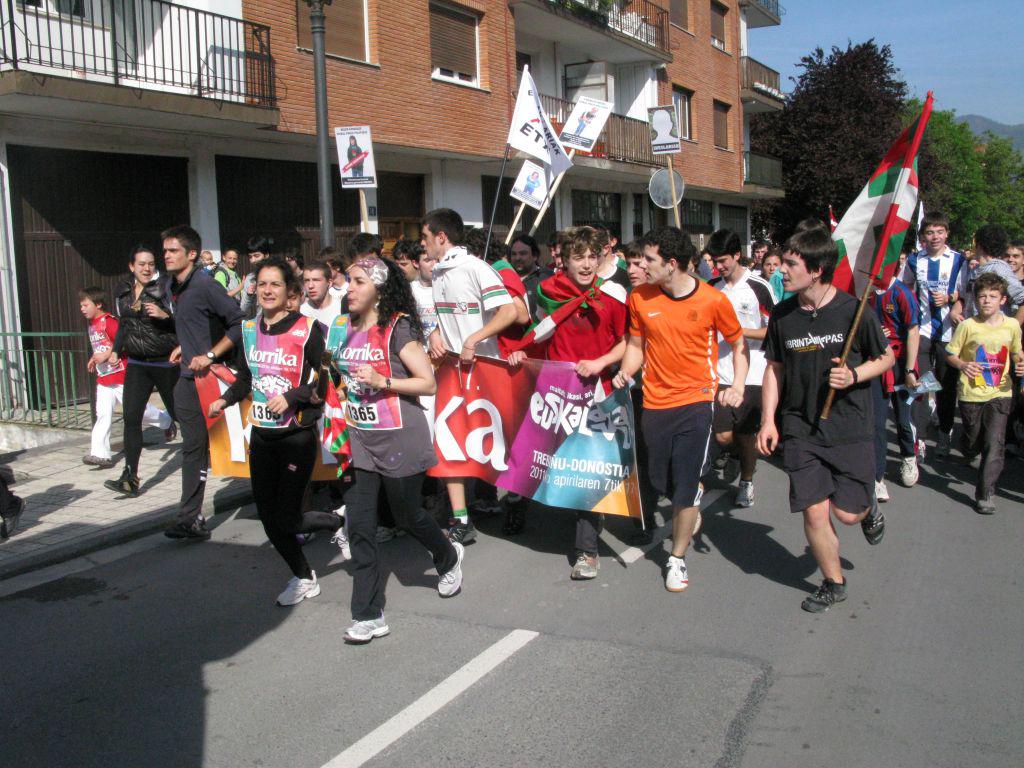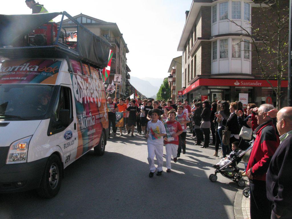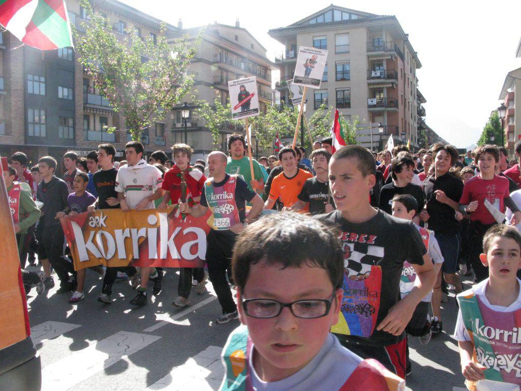 Korrika Goierrira iritsi da, 9:03 Korrika Legorretatik sartu da Goierrin, Donostiarako bidean. 40tik gora lagun iritsi dira lekukoaren atzetik, builaka eta pankartekin Korrika eginez. AEK-ko Legorretako ikasleak eta irakasleak izan dira Goierriko lurretan lekukoa hartu duten lehenak, Udalak erositako kilometroan. Korrikaren iritsieran urduritasuna sumatzen da, eta ekimena iritsi aurretik jende ugari ikusten da beroketak eta luzaketak egiten. Iragarritako orduan iritsi da Korrika Goierrira. Legorretar askok Eredu enpresa parean egin dute bat Korrikarekin. Atzo atxilotutako Esnaola anaiak ere gogoan izan dituzte Legorretarrek haiek askatzeko eskatzen zuen kartel handi batekin. Legorretako lehen kilometroa Korrikaren 1.348. kilometroa izan da.