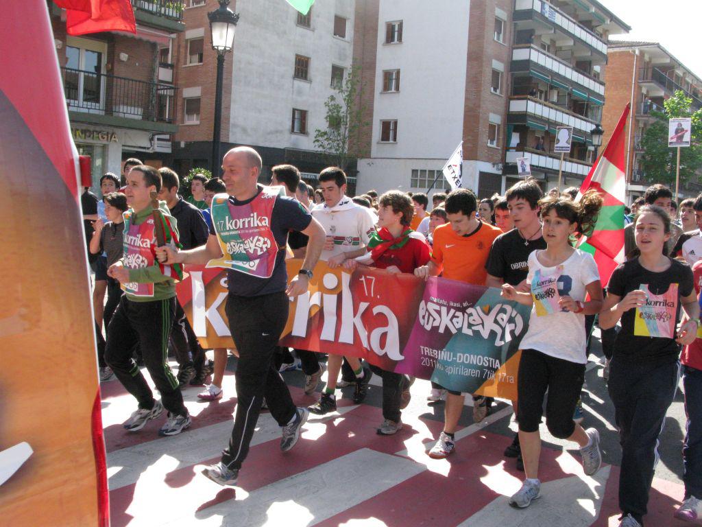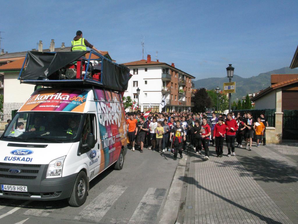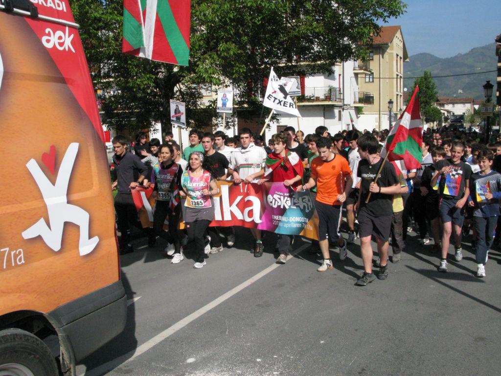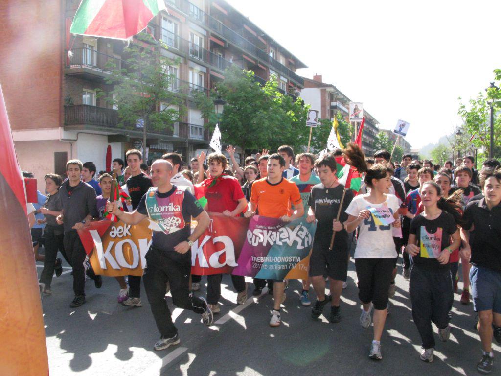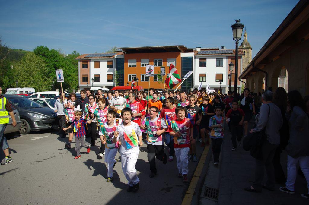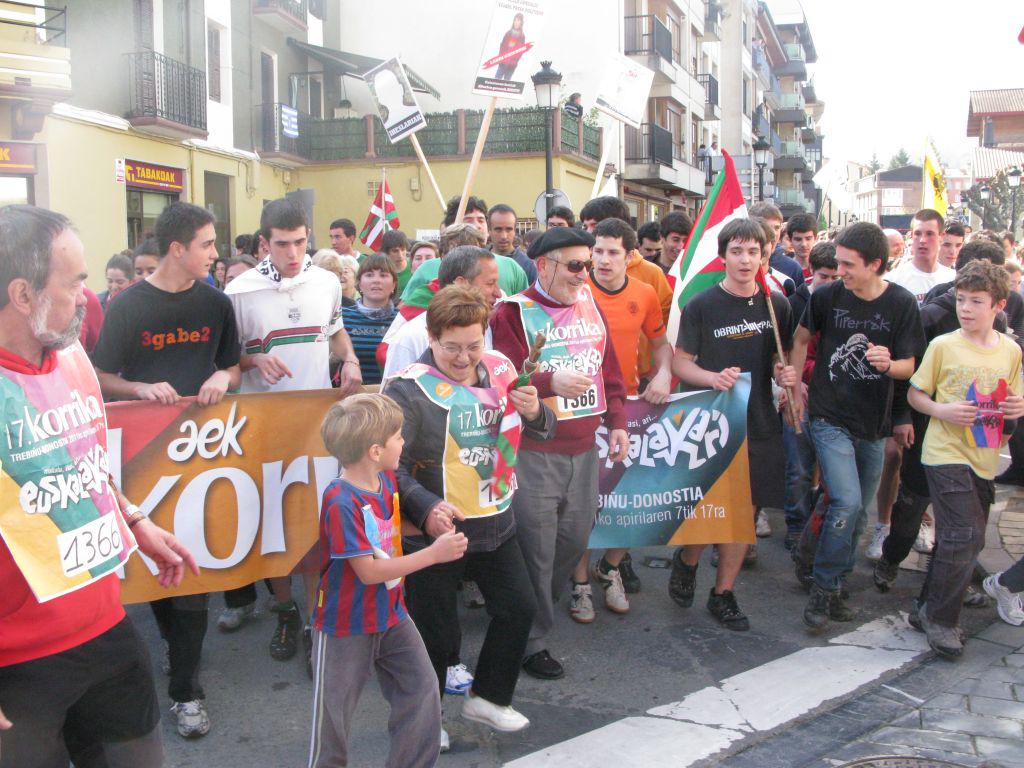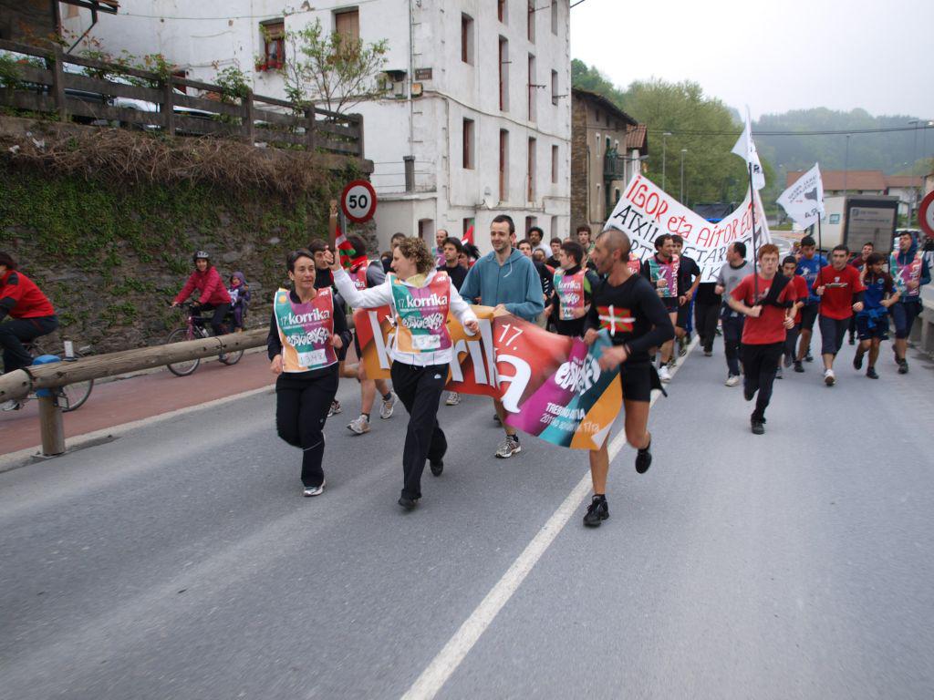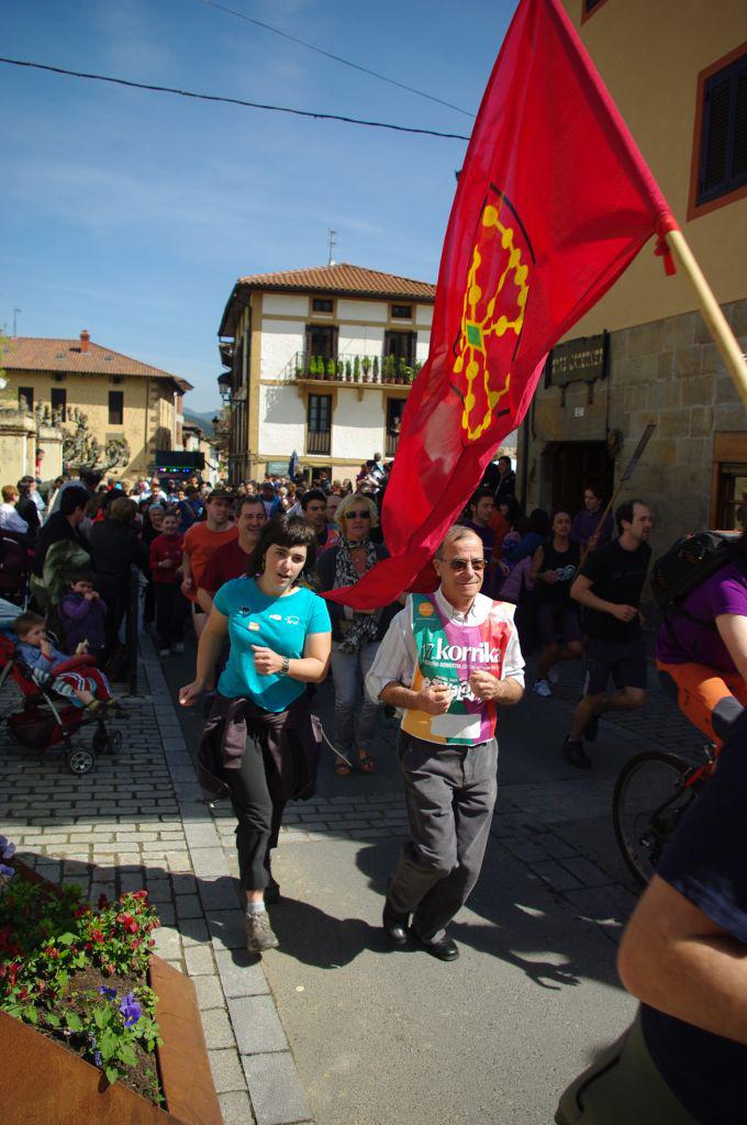 Korrika Goierrira iritsi da, 9:03 Korrika Legorretatik sartu da Goierrin, Donostiarako bidean. 40tik gora lagun iritsi dira lekukoaren atzetik, builaka eta pankartekin Korrika eginez. AEK-ko Legorretako ikasleak eta irakasleak izan dira Goierriko lurretan lekukoa hartu duten lehenak, Udalak erositako kilometroan. Korrikaren iritsieran urduritasuna sumatzen da, eta ekimena iritsi aurretik jende ugari ikusten da beroketak eta luzaketak egiten. Iragarritako orduan iritsi da Korrika Goierrira. Legorretar askok Eredu enpresa parean egin dute bat Korrikarekin. Atzo atxilotutako Esnaola anaiak ere gogoan izan dituzte Legorretarrek haiek askatzeko eskatzen zuen kartel handi batekin. Legorretako lehen kilometroa Korrikaren 1.348. kilometroa izan da.