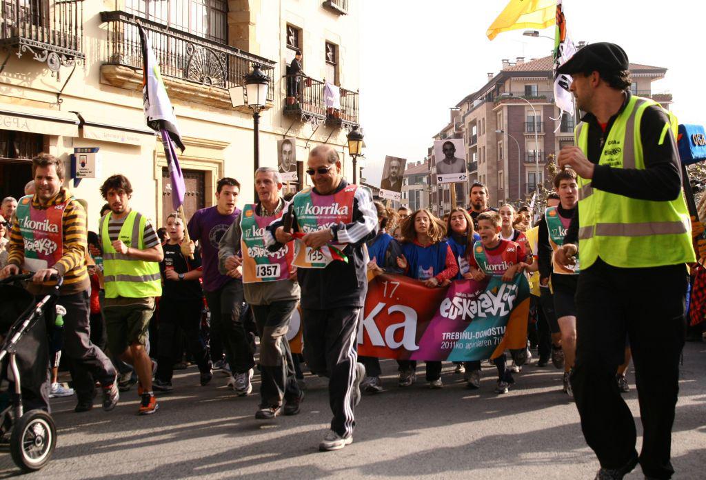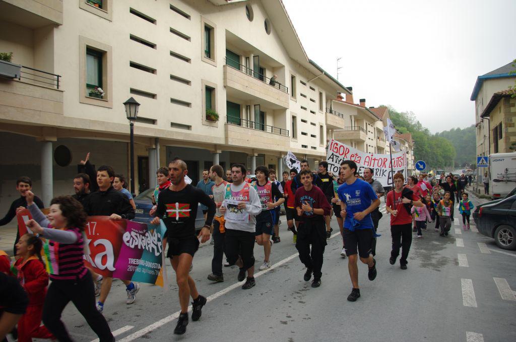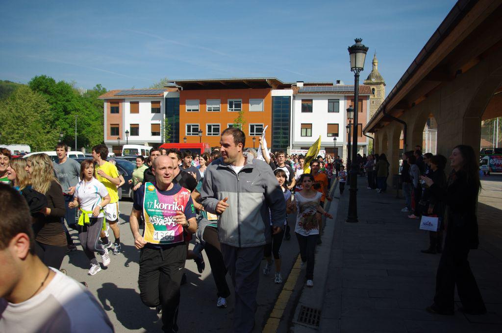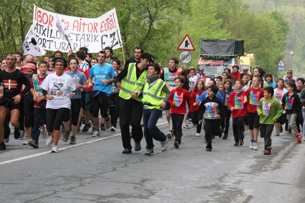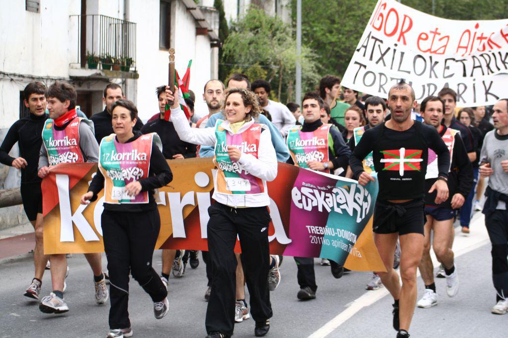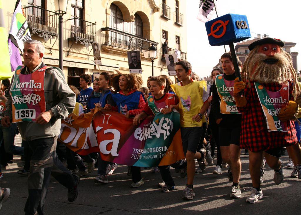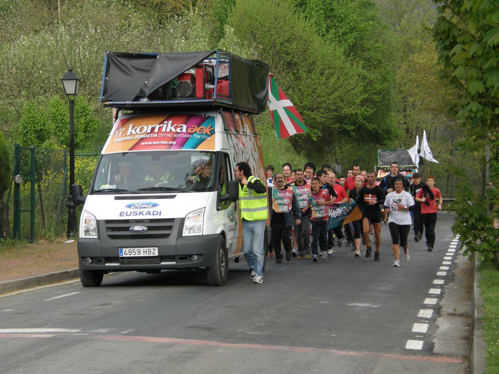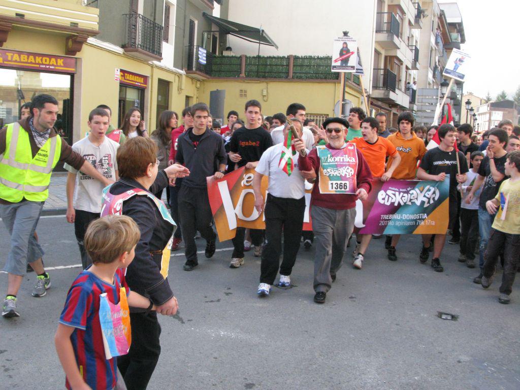 Korrika Goierrira iritsi da, 9:03 Korrika Legorretatik sartu da Goierrin, Donostiarako bidean. 40tik gora lagun iritsi dira lekukoaren atzetik, builaka eta pankartekin Korrika eginez. AEK-ko Legorretako ikasleak eta irakasleak izan dira Goierriko lurretan lekukoa hartu duten lehenak, Udalak erositako kilometroan. Korrikaren iritsieran urduritasuna sumatzen da, eta ekimena iritsi aurretik jende ugari ikusten da beroketak eta luzaketak egiten. Iragarritako orduan iritsi da Korrika Goierrira. Legorretar askok Eredu enpresa parean egin dute bat Korrikarekin. Atzo atxilotutako Esnaola anaiak ere gogoan izan dituzte Legorretarrek haiek askatzeko eskatzen zuen kartel handi batekin. Legorretako lehen kilometroa Korrikaren 1.348. kilometroa izan da.
