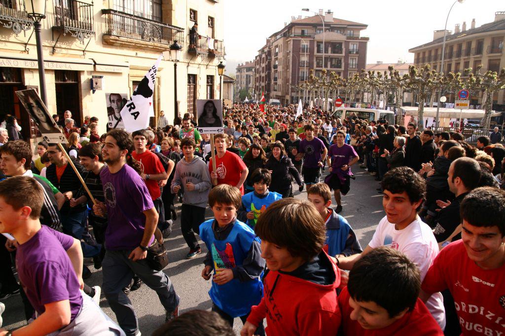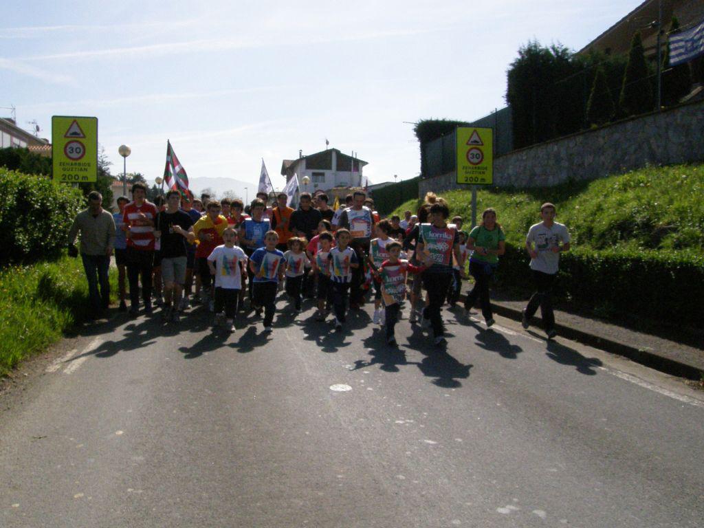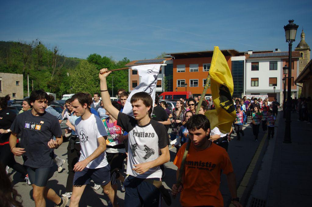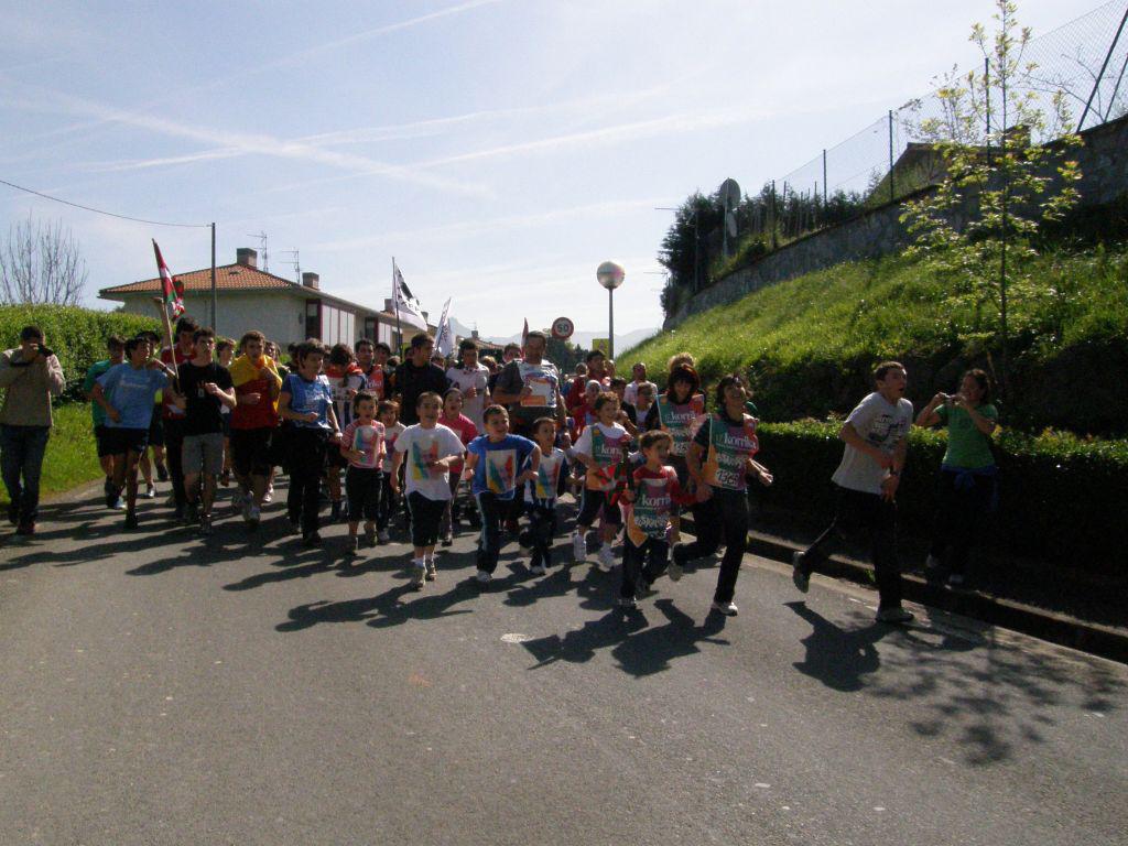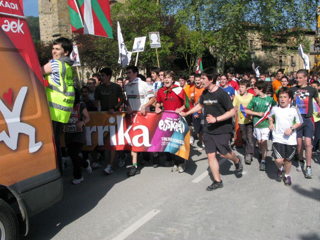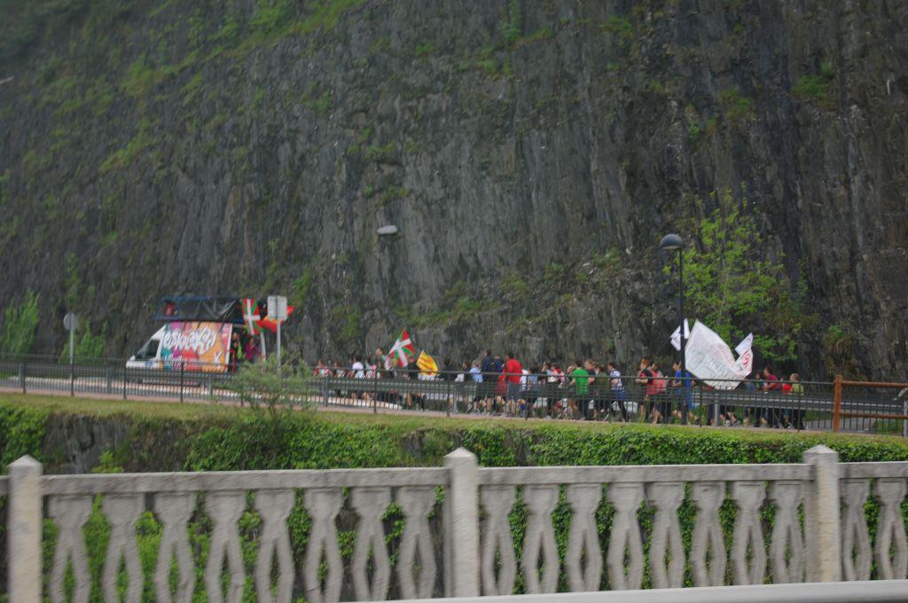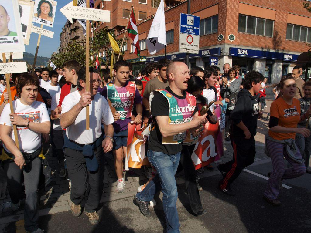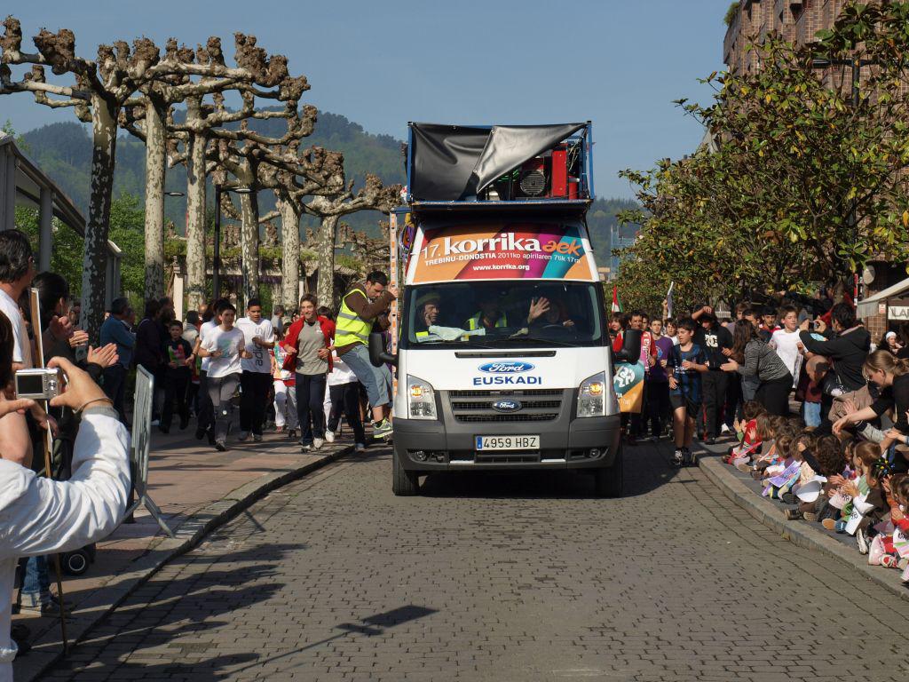 Korrika Goierrira iritsi da, 9:03 Korrika Legorretatik sartu da Goierrin, Donostiarako bidean. 40tik gora lagun iritsi dira lekukoaren atzetik, builaka eta pankartekin Korrika eginez. AEK-ko Legorretako ikasleak eta irakasleak izan dira Goierriko lurretan lekukoa hartu duten lehenak, Udalak erositako kilometroan. Korrikaren iritsieran urduritasuna sumatzen da, eta ekimena iritsi aurretik jende ugari ikusten da beroketak eta luzaketak egiten. Iragarritako orduan iritsi da Korrika Goierrira. Legorretar askok Eredu enpresa parean egin dute bat Korrikarekin. Atzo atxilotutako Esnaola anaiak ere gogoan izan dituzte Legorretarrek haiek askatzeko eskatzen zuen kartel handi batekin. Legorretako lehen kilometroa Korrikaren 1.348. kilometroa izan da.
