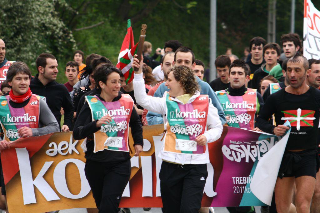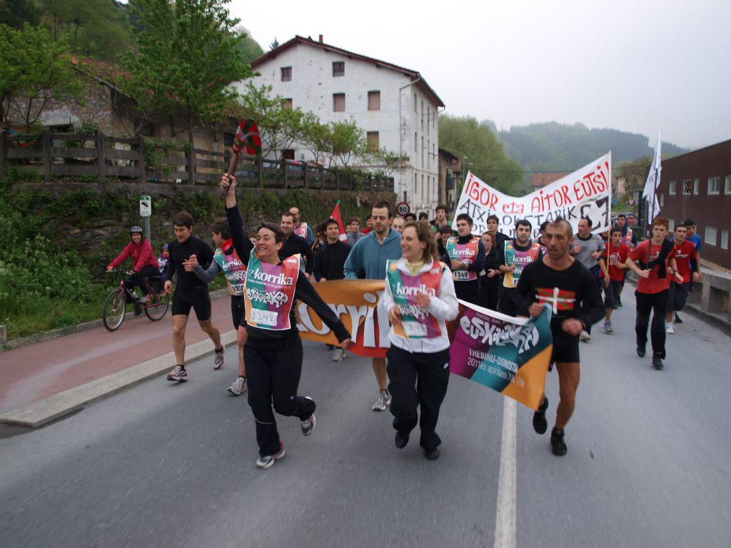 Korrika Aramatik ordiziara, 10:04 Zaldibiarrek hartu dute lekukoa Arama eta Ordizia arteko zati batean.