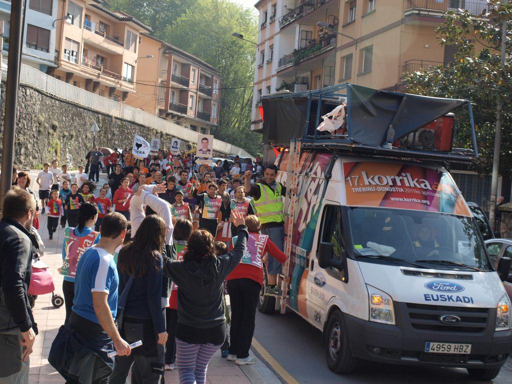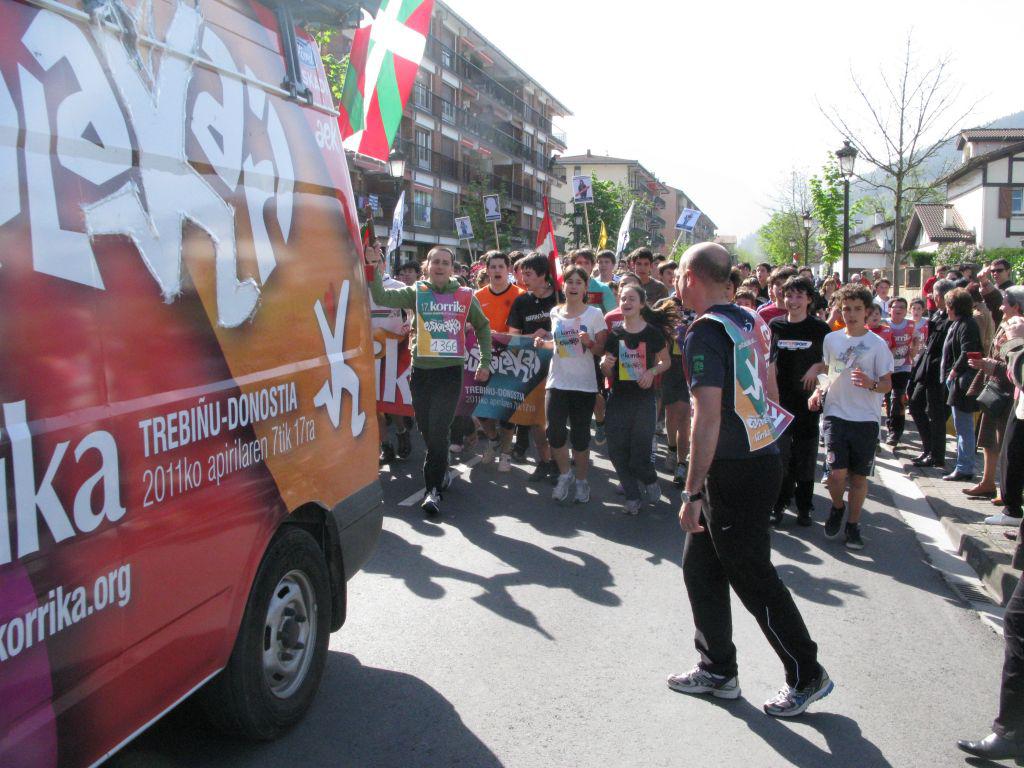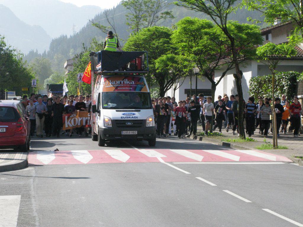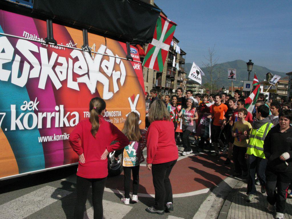 Korrika Beasainen, 10:50 Ehunka herritarrek babestuta zeharkatu ditu Korrikak Beasaingo kaleak. Ikasleak eta oro har adin guztietako pertsonak batu dira Korrikara Beasainen. Herriko enpresetako langileak ere ibilbidean zeuden, euren txandaren zain. Ikastetxeetatik gainera, ikasle ugari Korrikaren igaroa ikustera atera dira.