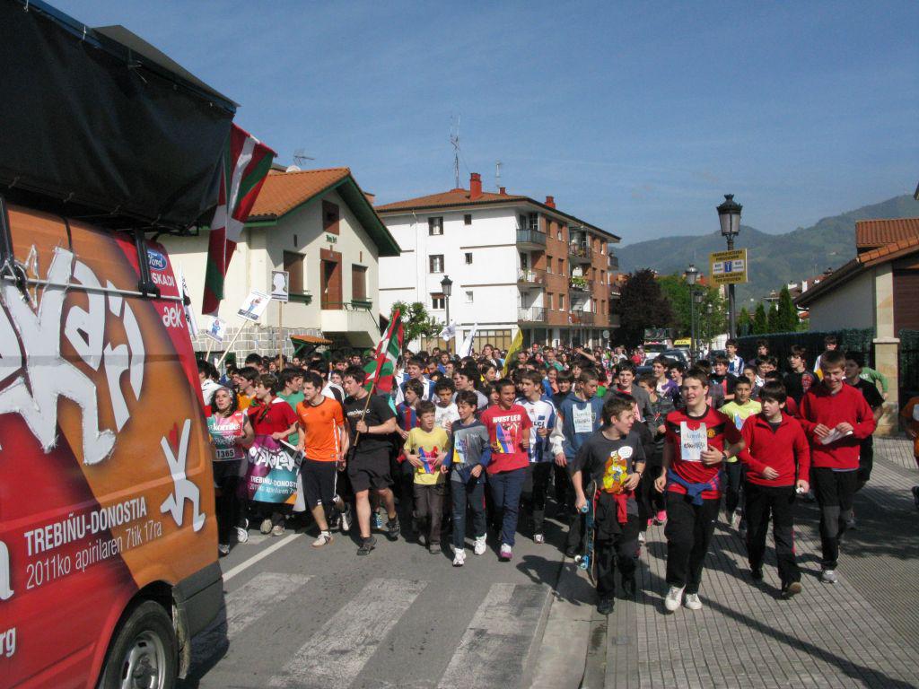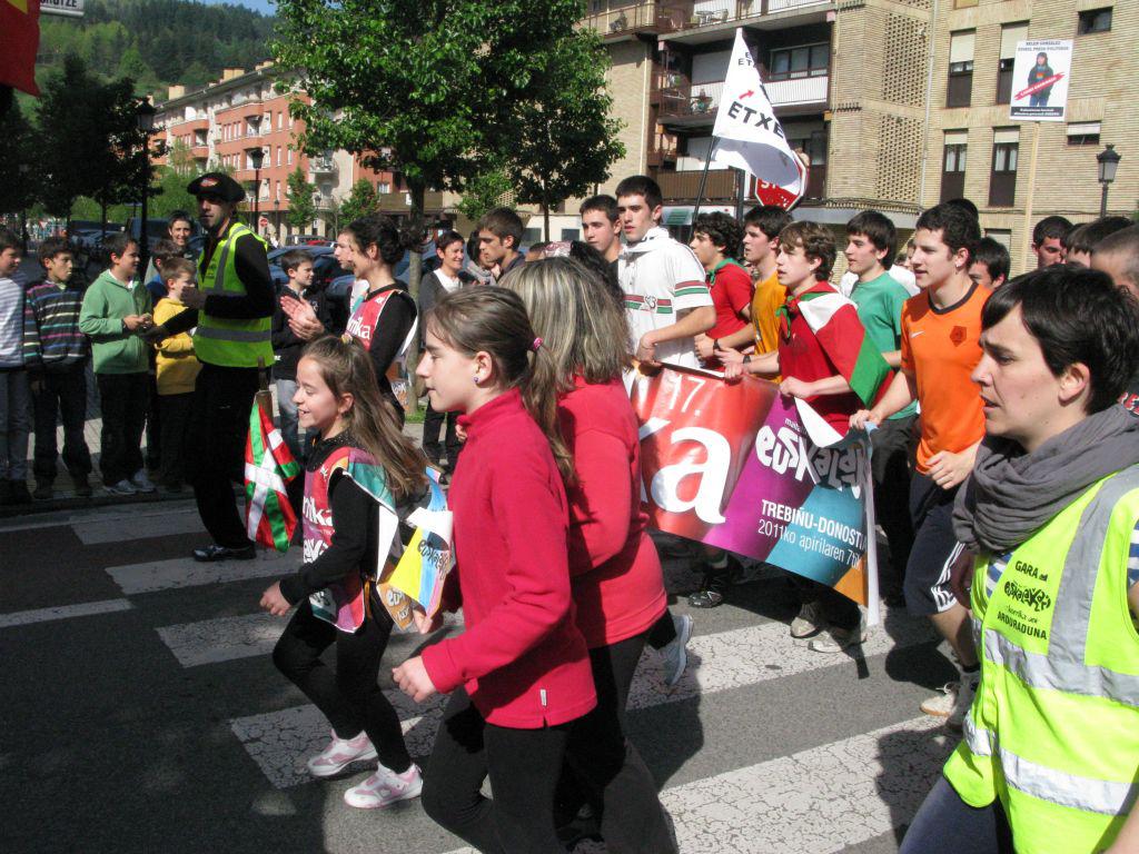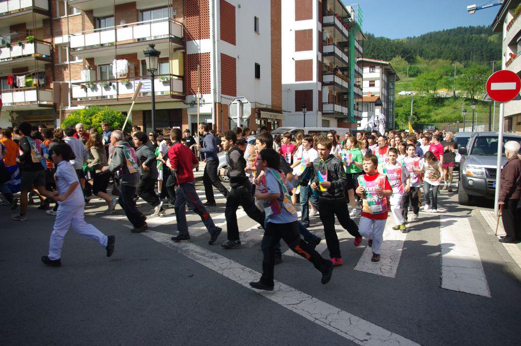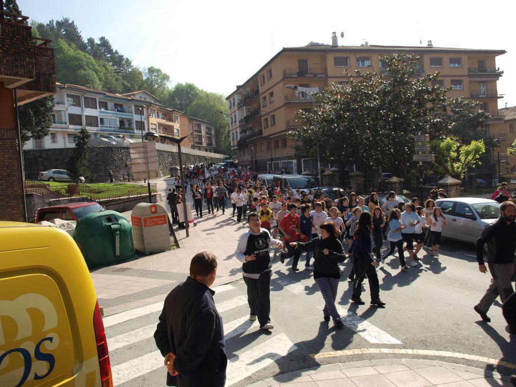 Korrika Beasainen, 10:50 Ehunka herritarrek babestuta zeharkatu ditu Korrikak Beasaingo kaleak. Ikasleak eta oro har adin guztietako pertsonak batu dira Korrikara Beasainen. Herriko enpresetako langileak ere ibilbidean zeuden, euren txandaren zain. Ikastetxeetatik gainera, ikasle ugari Korrikaren igaroa ikustera atera dira.