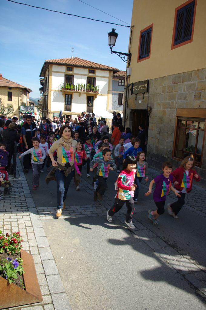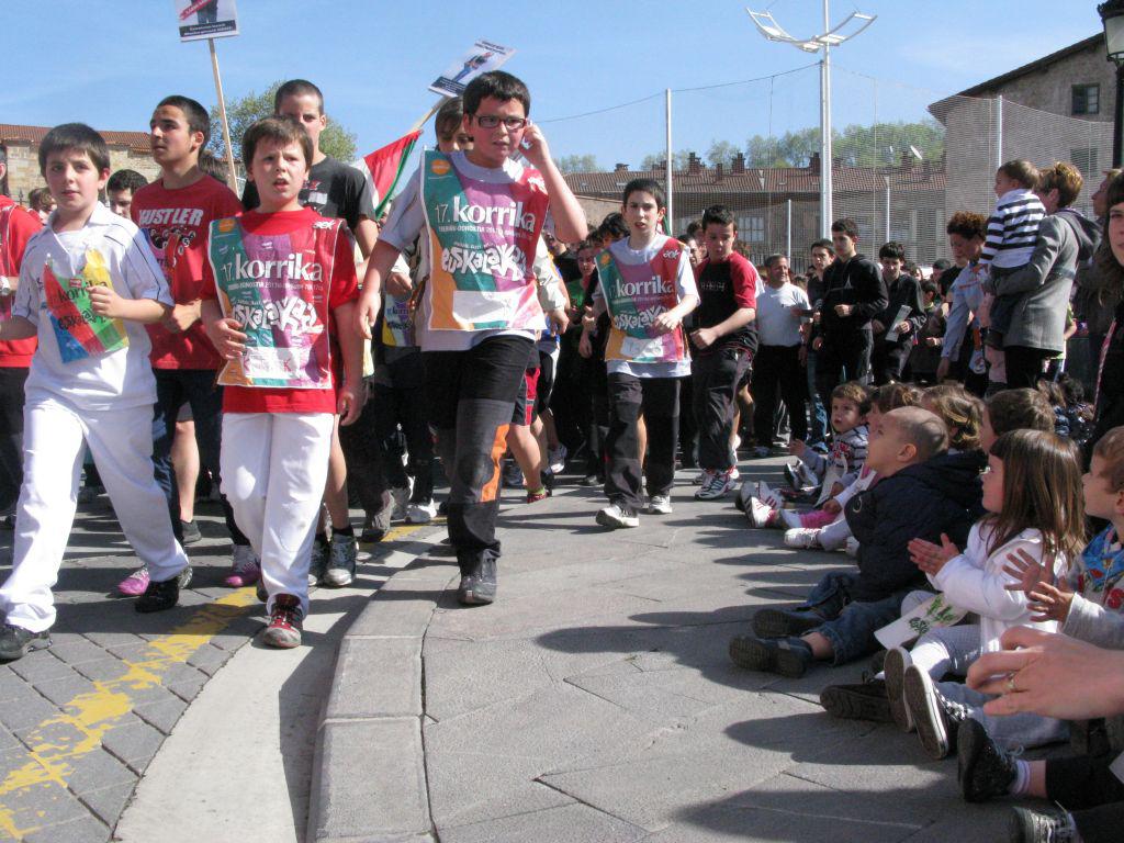Korrika Aramatik igaro da, 10:00 Korrika Aramara iritsi da. Ikasleek eta haurrek egin diote ongi etorria, Aramakoak diren, baina inguruko herrietan ikasten duten zenbait haur Aramara etorri baitira korrika egitera. Sei lagunek hartu dute lekukoa Araman, gehienak herritarrak, baina Orkli enpresako ordezkariak ere aritu dira Korrikan. Korrikalarien artean, haurrak, gazteak eta helduak zeuden.