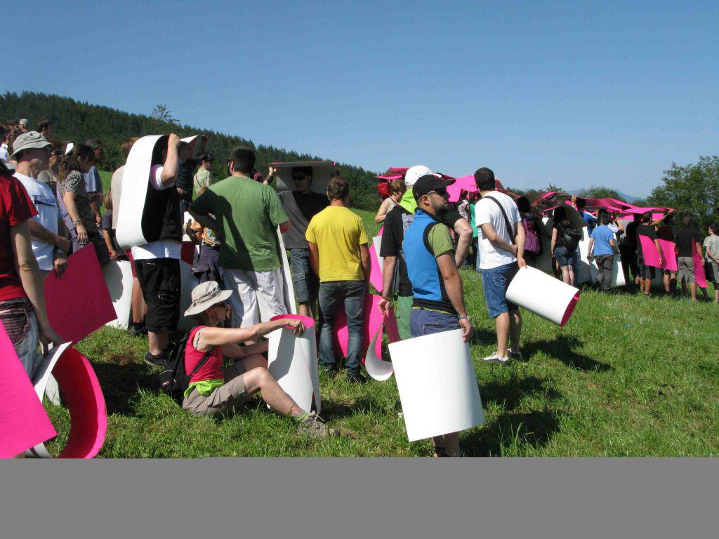 Herrien erabakitzeko eskubidea aldarrikatzen eta gizarteratzen urteak daramatzan ekimenak erronka koloretsua egin du ehundaka lagunek osatutako mosaikoarekin. Goizeko 10:30etan hasi da jaialdia Larraitzeko zelai handi batean. Herritar soilak protagonista dituen eta elkarlanean osatu den mosaiko erraldoia egin da hainbat irudi ezberdin sortuta. Antolatzaileek gutxienez bi mila lagun elkartzea espero zuten eta emaitza ikusirik, aurreikuspenak bete direla adierazi dute.