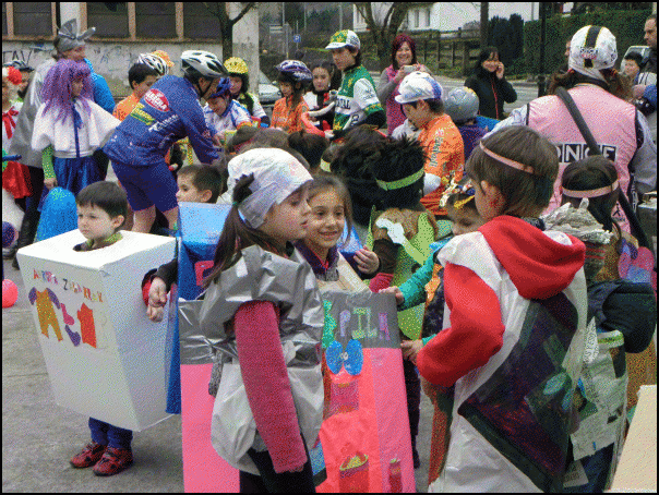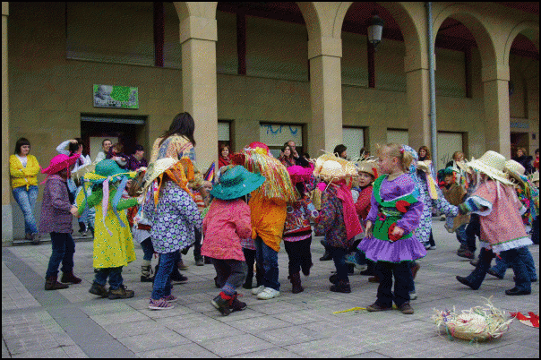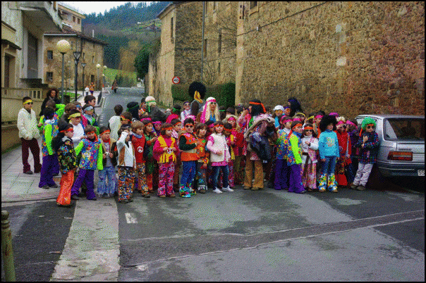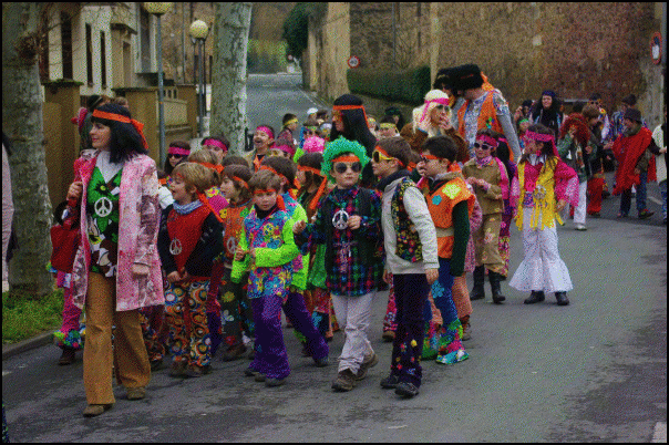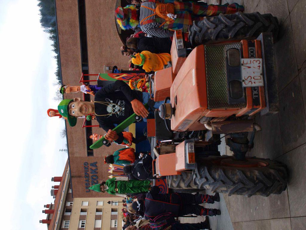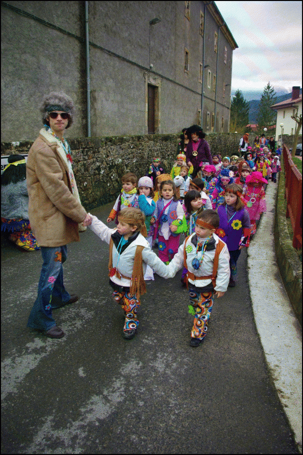 Segurako Laiotz Herri Eskolakoek 15:00etan hasi dute euren mozorro desfilea. Irakasleak eta ikasleak hippiez jantzi dira.