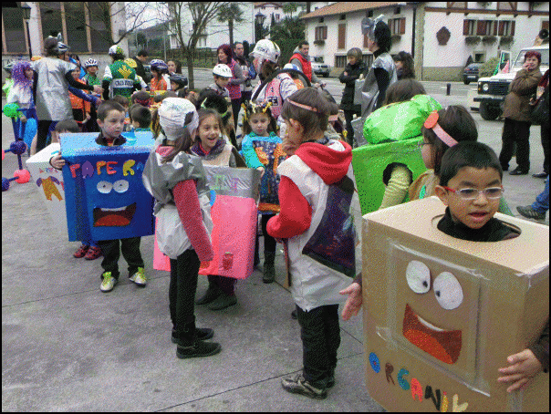 Itsasondoko Herri Eskolan 14:30ean eman diote hasiera mozorroen ibilaldiari. Azkenean, guztiak eskolako patioan bildu dira. Era guztietako mozorroak nahastu dira bertan, superheroiak, hondakinak botatzeko kontenedoreak eta ijituak edo buhameak ere bertan izan dira.