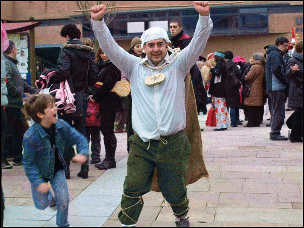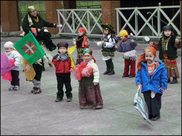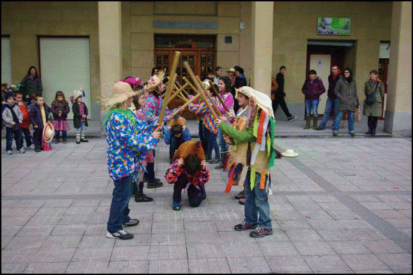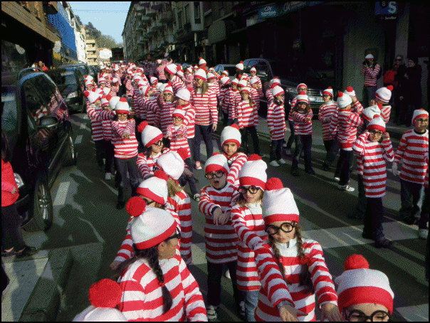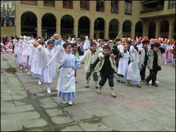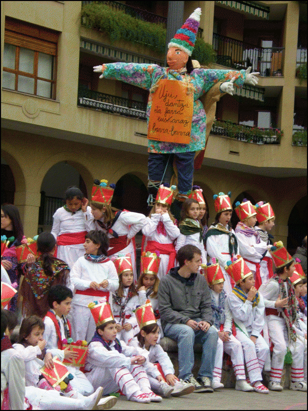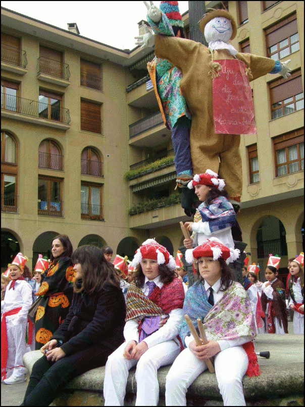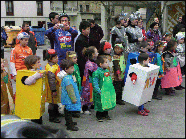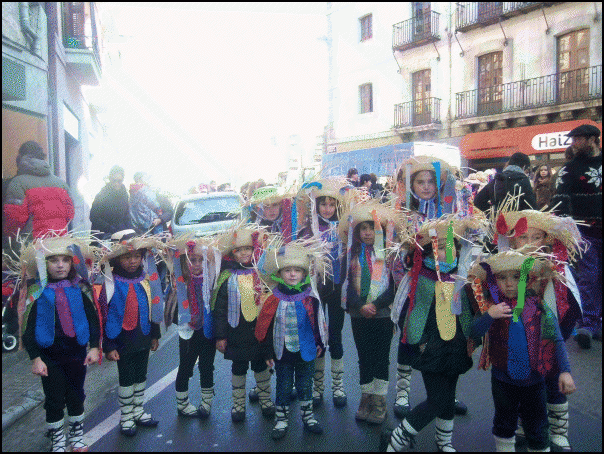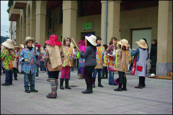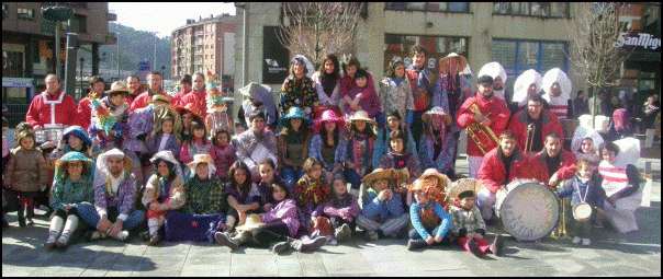 - La Salle-San Jose ikastetxeko Izartxo aisialdi taldearen konpartsa, larunbat inautean. San Inazio kalean