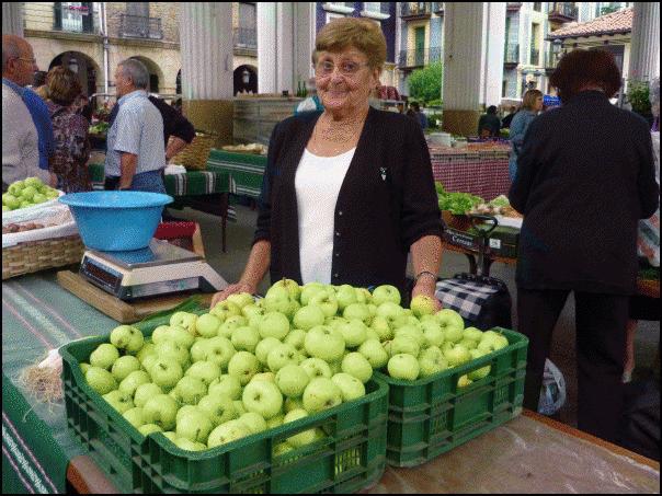 San Joan sagar asko ikusi zen atzo. Horien saskikadak saltzera hasi dira berriz ere feriara etortzen Gabiriako Oñatibi txikiko Miren Agirrezabala eta Errezilgo Joxe Antonio Aizpuru. Mirenek aitortzen zigunez, «ez da gerezirik batere izan eta arana ere gutxi, aldiz sagarra badago; ea horrekin suerterik izaten dugun».