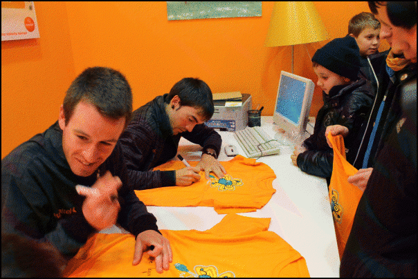 Euskaltel-Euskadiko Ion Izagirre eta Garikoitz Bravo txirrindulariak kamisetak sinatzen aritu dira 19:00etan hasita Beasaingo Logikaline-Euskaltelen Beasaingo saltokian. Denda lepo beteta egon da, batez ere mutil gaztetxoz. Bertaratuei Euskalteleko kamiseta bana oparitu diete, eta bi txirrindulariek sinatu egin dituzte kamiseta horiek. Batzuk etxetik ekarri dituzte malloteko kamisetak, posterrak eta abar. Bi txirrindulariek dozenaka sinadura egin dituzte, bakoitzari pertsonalizatutako aipamentxo eta guzti.