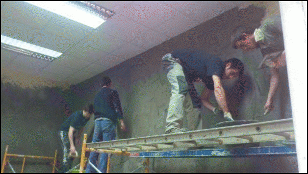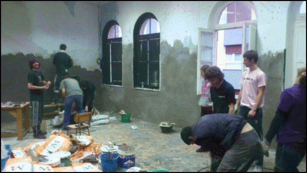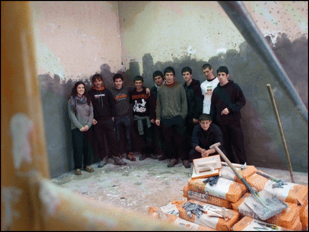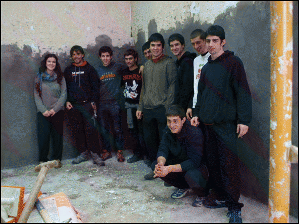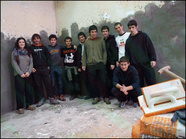 «Orain hasi gara erritmo pixka bat hartzen» diote asanbladako kideek obra lanei buruz. «Horrela jarraitzen badugu, hilabeteetako kontua izango da gaztetxea irekitzea», uste dute. Ez dituzte ofizioak ikasi, baina batak edo besteak dakiena, elkarri erakusten diote. «Hemen ikasi dugu, inprobisatuz», diote, baina gaztetxe zaharrean ere egin behar izan zuten obrarik. «Hasierak zailtasunak ditu, indarrez hartzea kostatu zitzaigun agian, baina guztion artean lan eginez, asko aldatu dira gauzak».