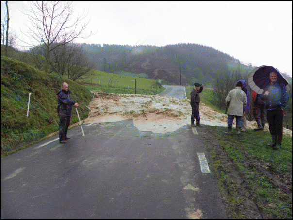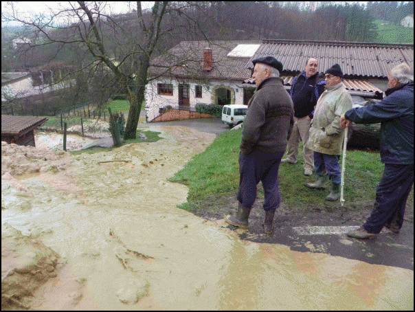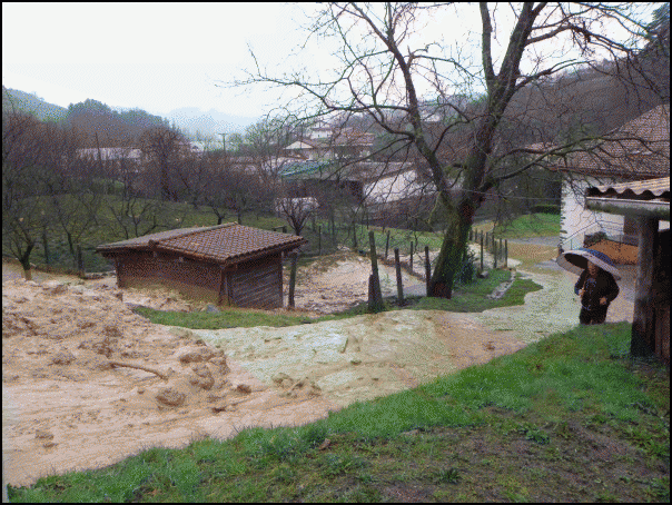 Zirkulazioa etenarazteaz gain, kalte nabarmenak eragin ditu lohiak. Batetik, Eguzkialde etxea sarbiderik gabe geratu da. Sagastian barrena, malkarrean gora joanda bakarrik irits liteke orain. Bidearen gainetik lerratu da lur jausia. Bestetik, Lizarraga baserriaren atariraino iritsi da lokatza, tartean oilategi txabola bat inguratuta.