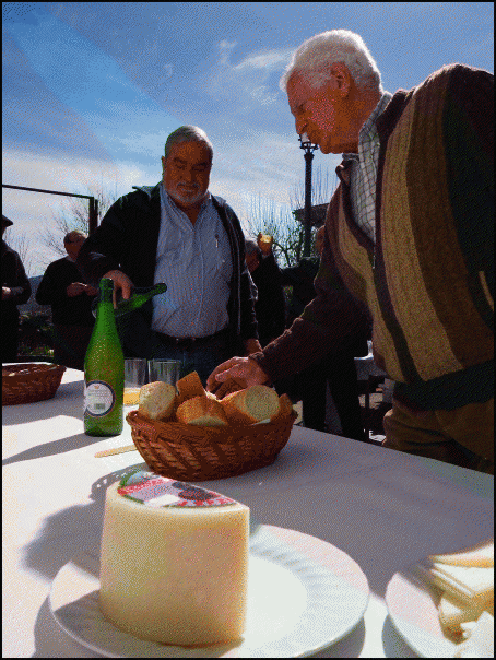 Lasak gazta moztu eta sagardo botila ireki zuen. Ondoren, bildutako guztiek kultur etxearen kanpoaldean sagardo eta gazta berriak dastatu zituzten.