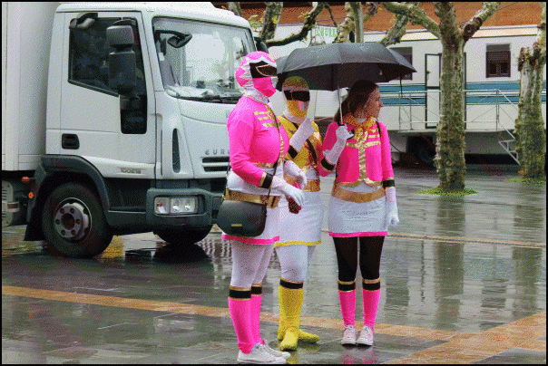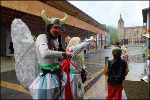 Euriari beldurrik ez dioten mozorroak Lazkaon