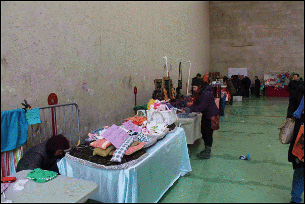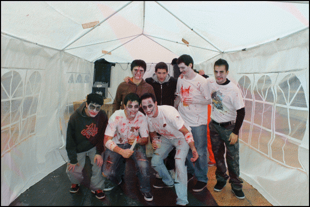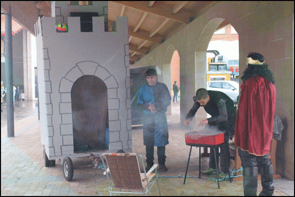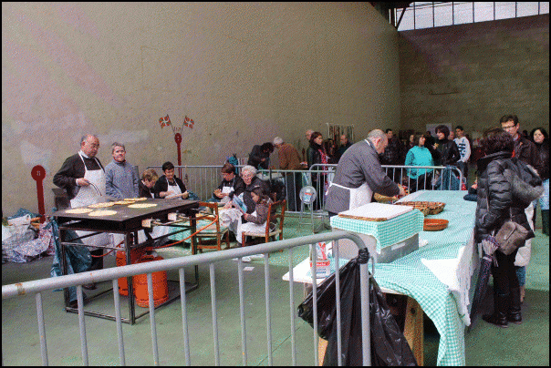 Mozorroez gain, artisau azoka eta Lazkaoko talogileak ere egon da goiz partean, plaza ondoko frontoian. Laster mozorrotuen bazkaria hasiko da txosnetan.