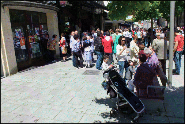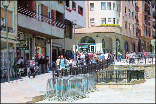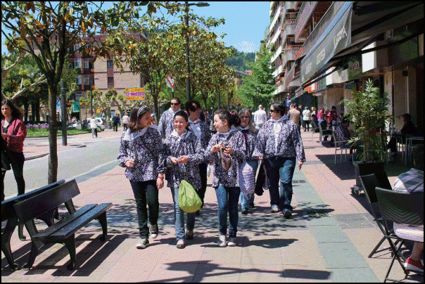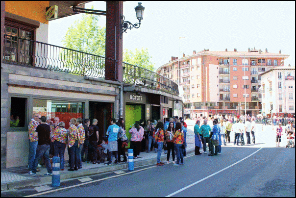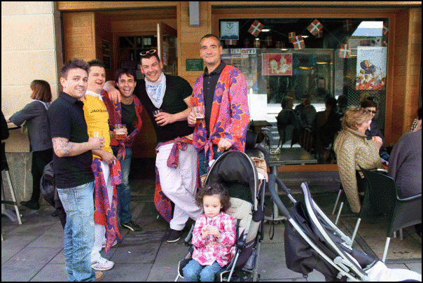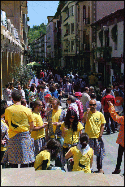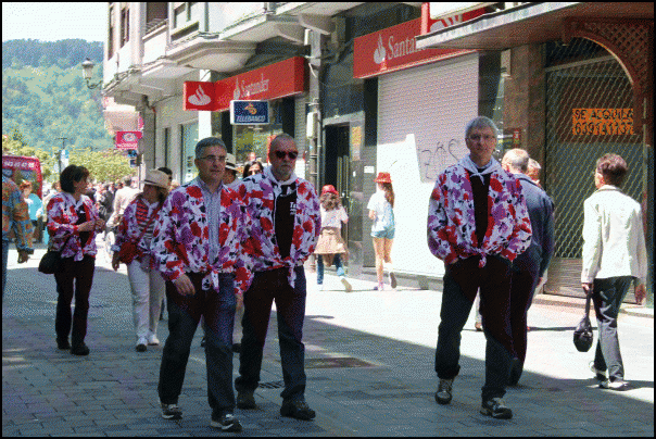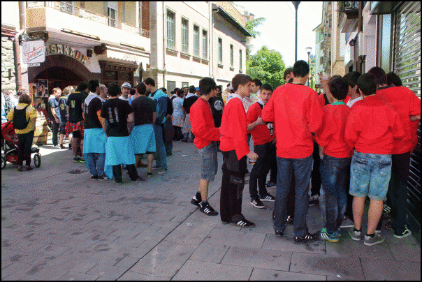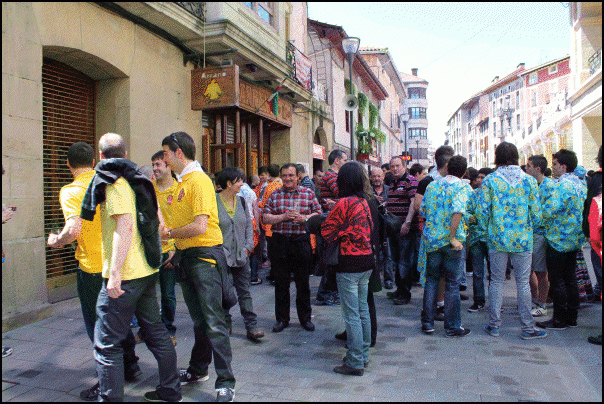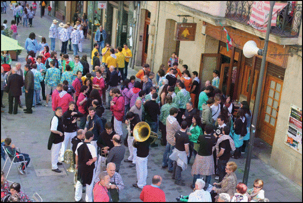 Jendetza dabil Beasaingo kaleetan, kuadrilen egunean. Blusak jantzita edo gerrian lotuta dituzte gehienek eta txarangen doinua entzuten da kaleetan. Poteorako giro bikaina dute eta laster joango dira bazkaltzera. Arratsaldeko 17.30ean abiatuko dira kuadrilak Barrendain kaletik hasi eta erdigunera kalejiran.