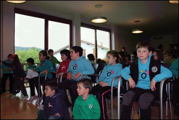 Itsasondo, Zerain eta Gabiriako haurrak eta gurasoak hartu dituzte Olaberrian; eta festa giroan pasa dute arratsaldea denak batera. Lauak aldean egin diete harrera gonbidatuei eta dantza saioaren ondoren, udaletxeko pleno aretoan Amaia Intxausti, Jaione Sasieta eta Juanito Rubio korrikalariak elkarrizketatu dituzte txikiek.