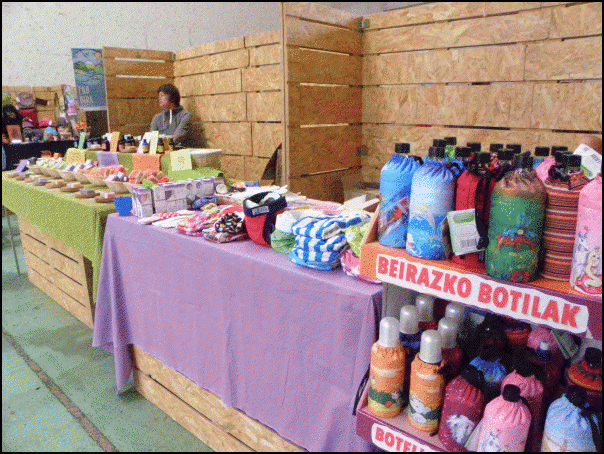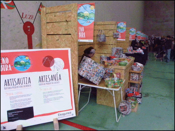 Eskulangileak ere joan dira. Metalezko eskulturak, pitxiak, larruzko poltsak, xaboi naturalak, ume txikientzat arropa nahiz tresnak, kremak, puntuzko arropa… dauzkate mahaietan. Energiaren arloan, Goiener enpresak energia berriztagarrien aplikazioen informazioa eman du, eta Kutxak auto elektriko bat jarri du frontoian.