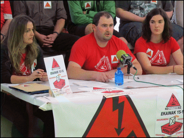 Goi tentsio linea berriaren aurkako plataformako kideek gaur eman dute herri galdeketaren berri, Mutiloako pilotalekuan. Ekitaldian hiru herrietako bizilagunek parte hartu dute eta Asier Agirre gabiriarrak irakurri du testua.