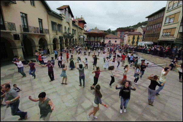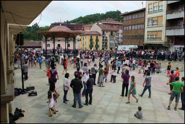 Bazkalostean Zaldibiako txistularien doinuek alaitu dute giroa, Dantza Zati Erraldoia entseatzen hasi aurretik. Behin entseguak eginda, plaza bete dantzari aritu dira dantzan abesti bera behin eta berriro. Euskal Herriko txoko askotatik inguratu da jendea dantzara; tartean Dantza Zati Bat grabatu duten taldeak ere bai. “Oilo ipurdiarekin aritu naiz dantzan” zioten batek baino gehiagok, halako jendetza batuta dantzan ikusita.