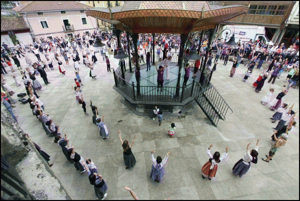 Orain hamabi etxe ezberdinetako sagardoa dastatzen ari dira Bideluzeko zubian, taloz lagunduta eta laster hasiko da Patxi eta konpainiaren erromeria, festari amaiera dantzan emateko.
