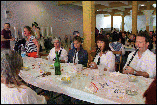 Gure Esku Dago festa arrakastatsua izaten ari da Beasainen. Eguerditik hasi dira festan autordeterminazio eskubidearen alde. Musikariek lagunduta poteatu dute lehenik eta plaza azpian bazkaldu dute 200 lagun baino gehiagok, elkarteek lehiaketa moduan prestatutako menua.