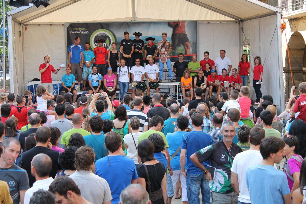 Helmugara iristen lehenak izan zirenek igande arratsaldean jaso zituzten sariak Beasaingo plazan. Gehienek antolakuntzari eta boluntarioei, etxekoei eta lagunei emaz zizkieten eskerrak, eta tartean Mikel Valdivielsori ere zuzendu zitzaion Ehunmiliak probako txapelduan izan zen Imanol Alenso, «proba hau lau urtetan posible egiteagatik».