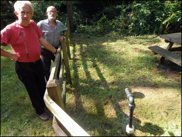 Joxe Mari Urdangarin eta Pello Auzmendi, “arrautza ustel” ura darion iturriaren alboan./Aimar Maiz
