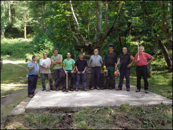 Herrian, gisa horretako lanak egiteko sortu dute, aurten, auzolan taldea. «Jendea bilduz gero lanerako indarra izaten da», zioen 75 urteko Pello Auzmendik, taldeko edadetuenak. Auzotarrak ez ezik, Ataunen luze osoko herritarrak inguratu ziren lanera.