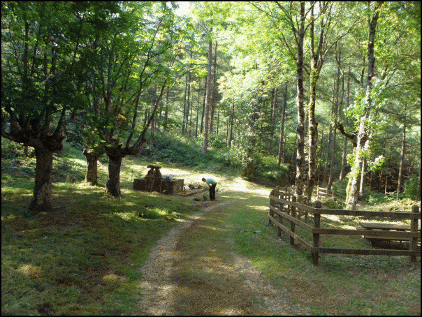 Egurrezko pare bat mahairekin atsedenlekua atonduta dago. Mendiko ura biltzeko aska bat lizar lodien eta gaztainondoen gerizpean, Erremedio baserri zaharraren horma eroriak, eta beheko sakonean «arrautza ustel» ura ateratzen den iturburua. Horixe da orain Erremedio. Askoz gehiago izan zen antzina, ordea.