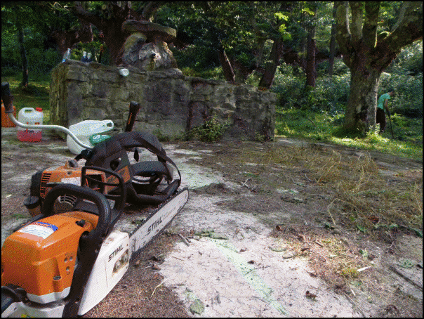 Duela hiru-bat urte garbitu zuen Ataungo Udalak parajea. Harrezkero landarediak bere eginda zeukan atzera, eta larunbatean bederatzi laguneko auzolan taldea jardun zen. Hiru-bat orduan, atsedenlekuari, ur sulfurosoaren iturburuari eta haraino iristeko bideei berealdiko garbitua eman zieten, desbrozadoreekin sasi-belarrak moztu, eta aitzurrarekin ur erretenak garbitu. Aska inguru osoa lokaztuta zegoen, ura baltsatuta.