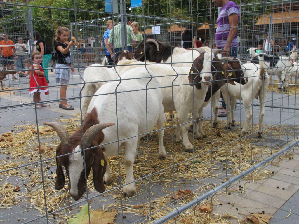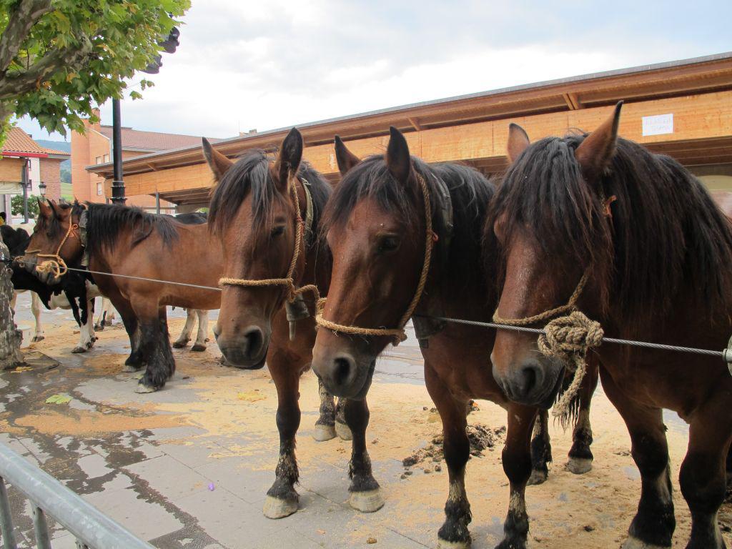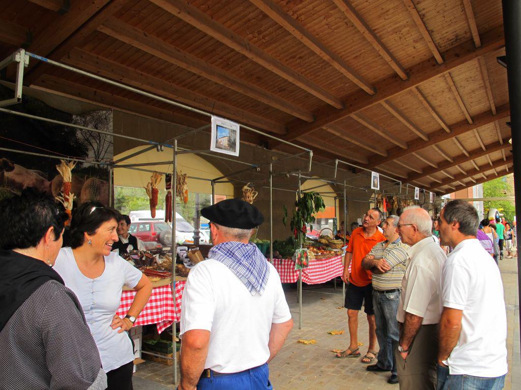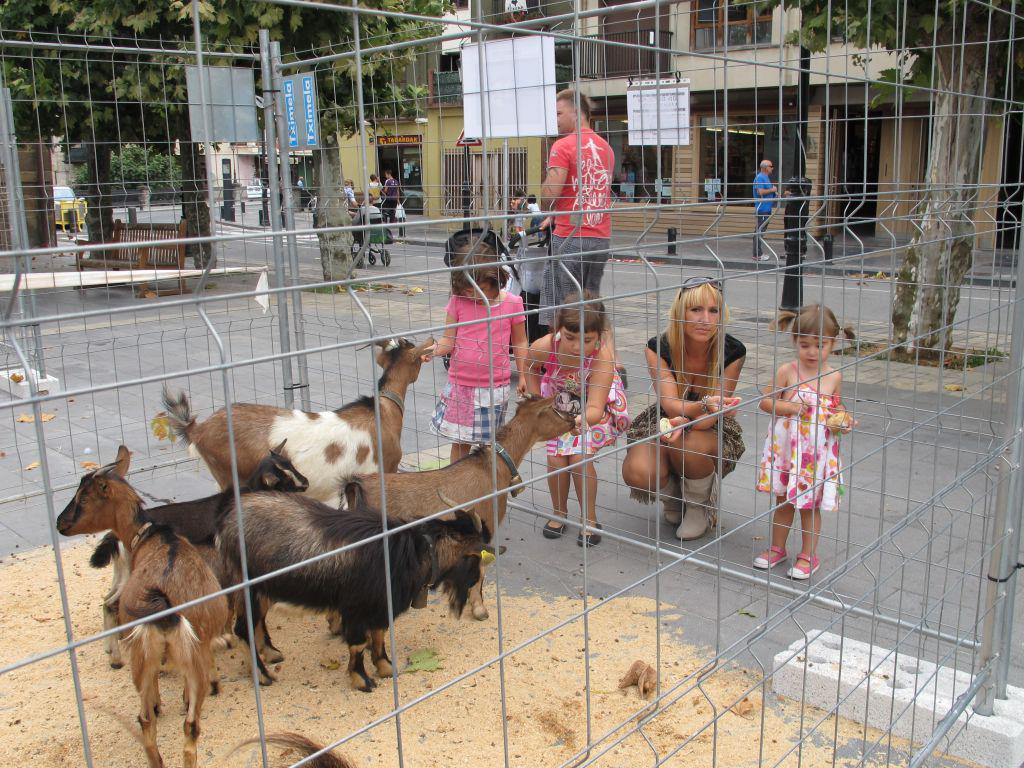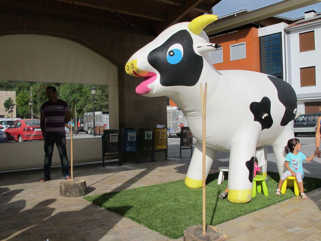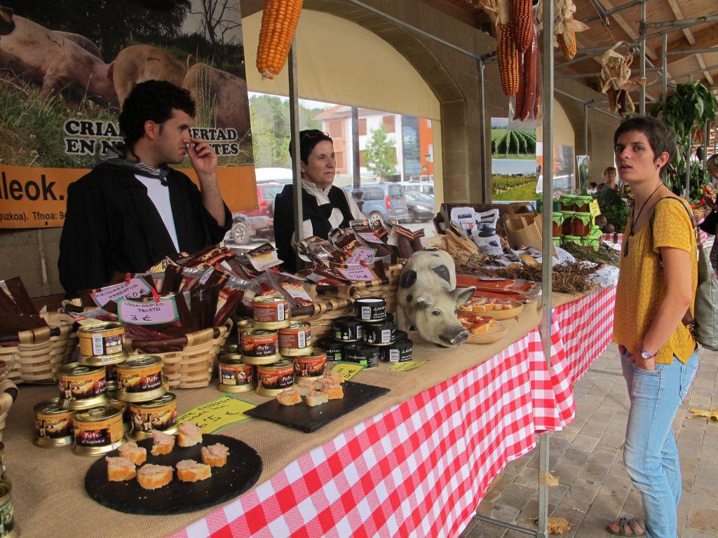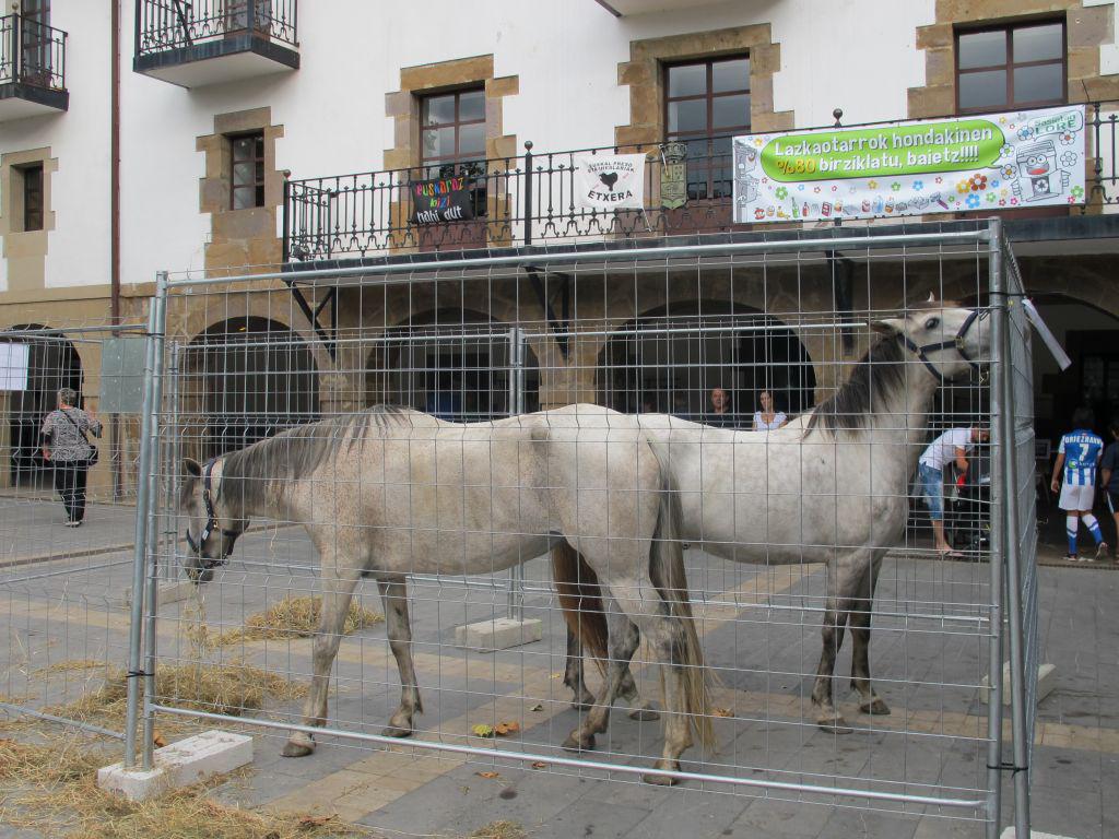 Plazan, erdialdean, ganadua eta etxabereak jarri dituzte ikusgai: Behiak, astoak, zaldiak, ardiak, ahuntzak eta poniak, besteak beste. Lazkaoko hamabi baserritatik eramandakoak. Plaza inguruklo arkupeetan, aldiz, baserriko produktuen postuak atondu dituzte. Bederatzi baserrik hartu dute parte guztira eta barazkiak, haragia, gazta, esnea eta txerri haragia jarri dituzte salgai.