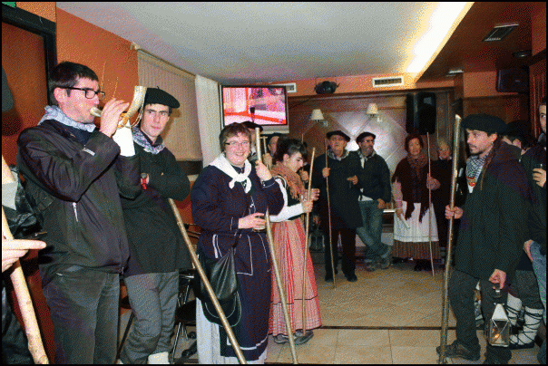 Bi urtez behin joaten dira Seguran baserrietara santa-eskean; beste urteetan herri kaskoko etxeetan abesten dute. Plazan herriko abesbatzeko dozena bat kiderekin bat egin zuten 20:00etan, Txanbolinpen txokolate beroa hartuz. Guztira 40 lagundik gora bildu ziren plazan, eta herriko taberna guztiak alaitu zituzten kantuan. Afaltzeko, ohiturari jarraituz, baratzuri-zopak jan zituzten lehen plater gisa Elorri elkartean. Aurten28 urte bete dira Elorri Kultur Elkarteko kideek santa-eskea berreskuratu zutela.
