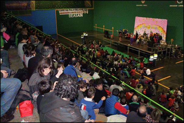 Espainiako Auzitegi Nazionalean egiten ari diren herriko tabernen eta Segi gazte erakundearen aurkako makroepaiketen “izaera politiko eta antidemokratikoa” salatzeko Gipuzkoako lau herrietan egiten ari diren ekitaldien artean, Beasainen LIBRE Irrien Lagunen emanaldia egon da Antzizar kiroldegian. Antolatzaileek azaldu dutenez “ia-ia sarrera guztiak amaituta” zeuden. Porrotxek, Ane piratak eta beraien lagunek ehunka haur eta guraso kantuan eta dantzan jarri dituzte, LIBRE ekimenaren alde.