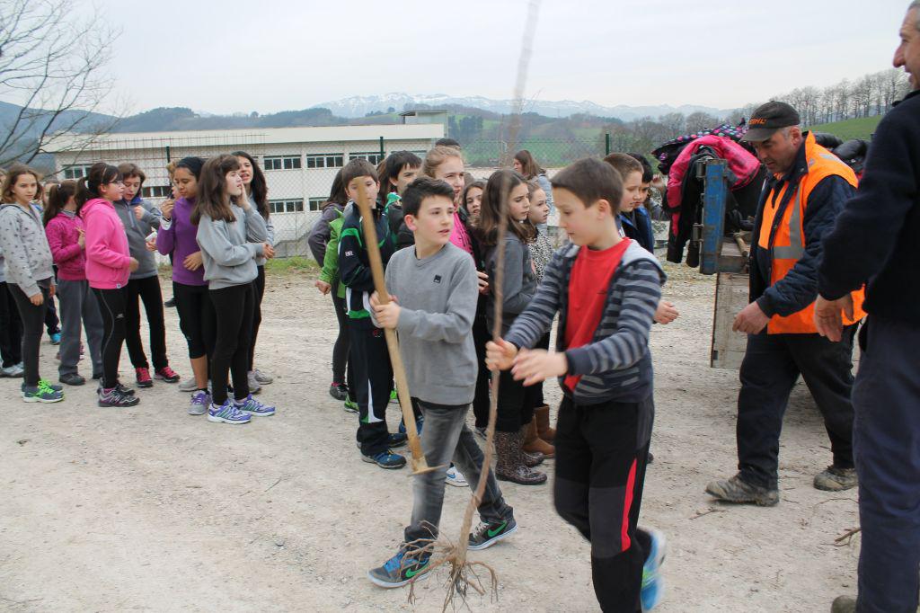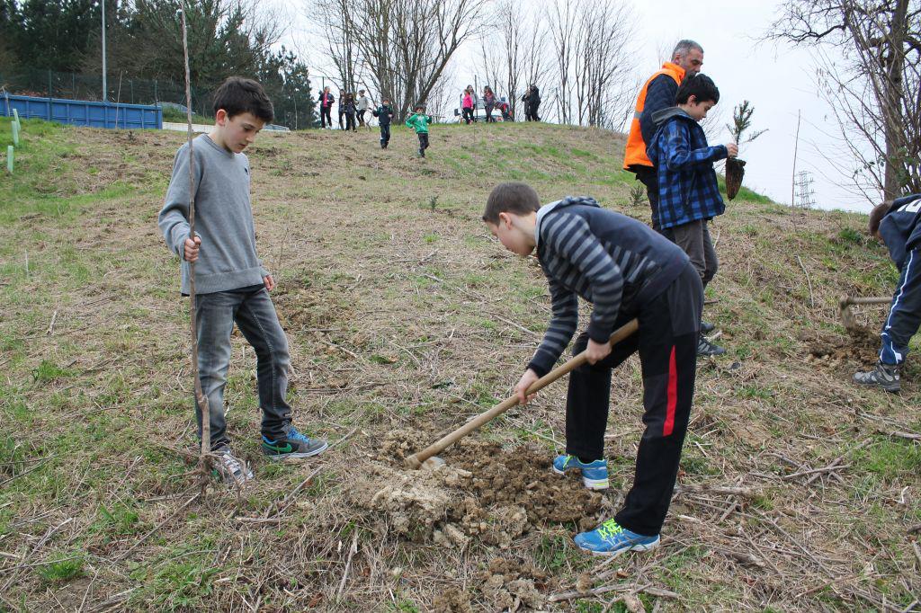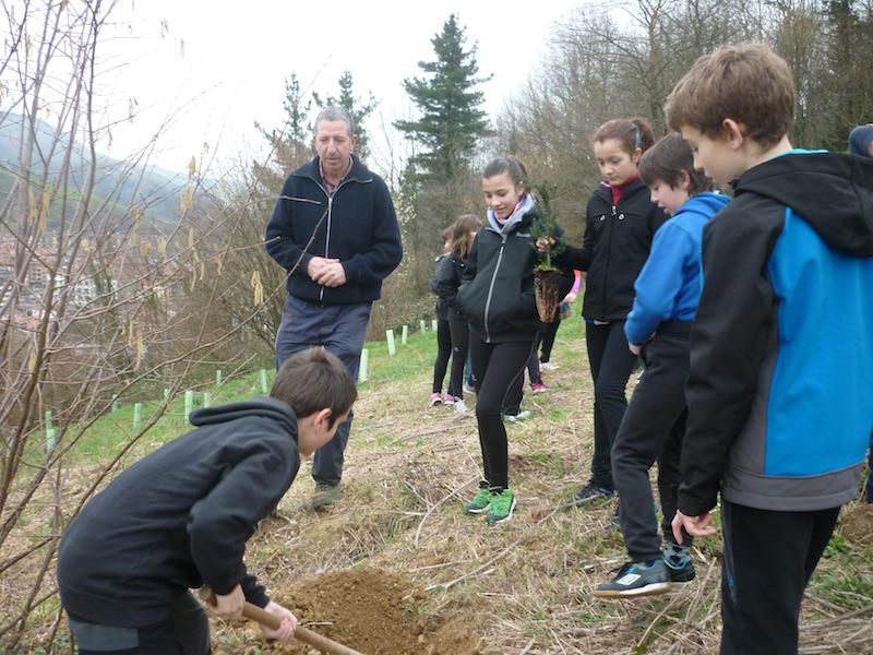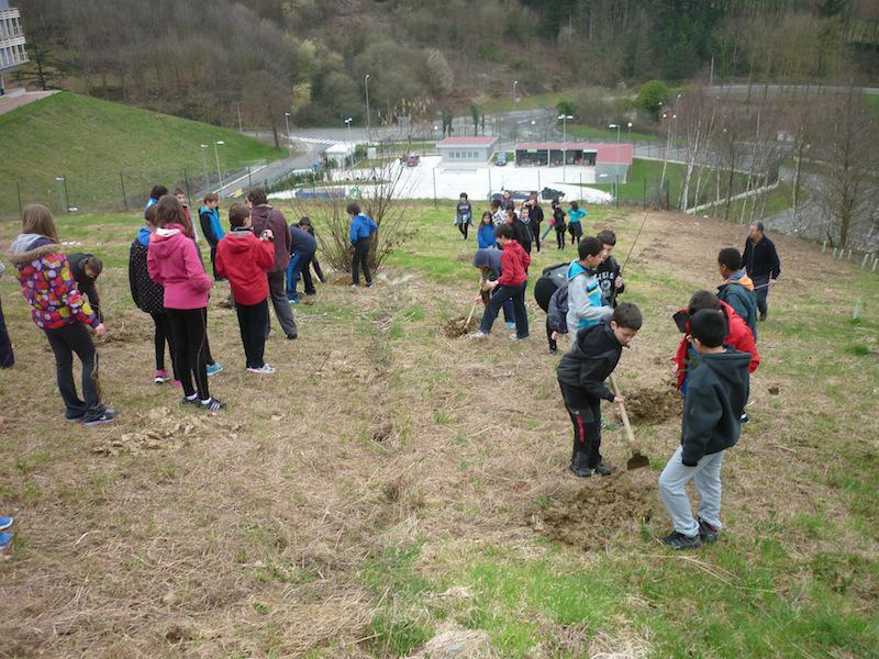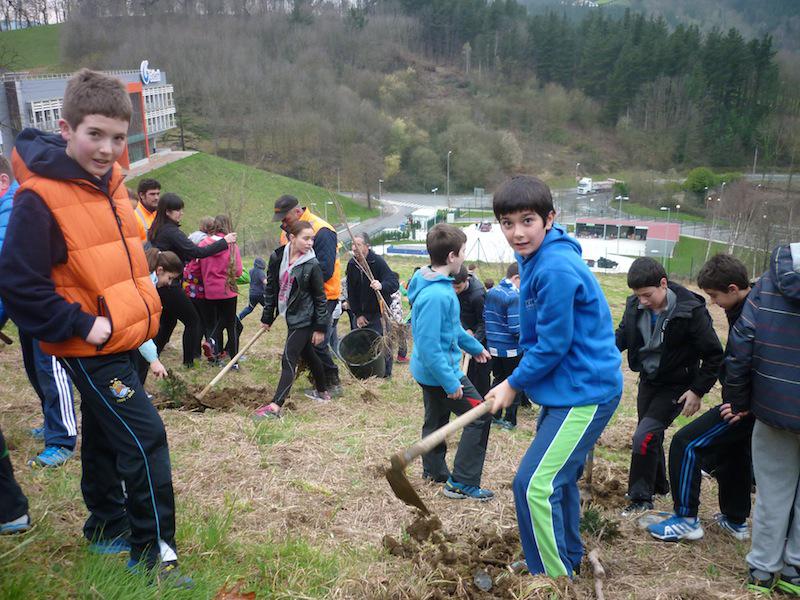 Zuhaitz Eguna egin dute gaur Ordizian. Urdaneta Eskolako eta Jakintza Ikastolako LHko 6. mailako ikasleek, binaka jarrita, 70 zuhaitz landatu dituzte Garbigunearen goialdeko lurretan, udal lorazainen laguntzarekin.