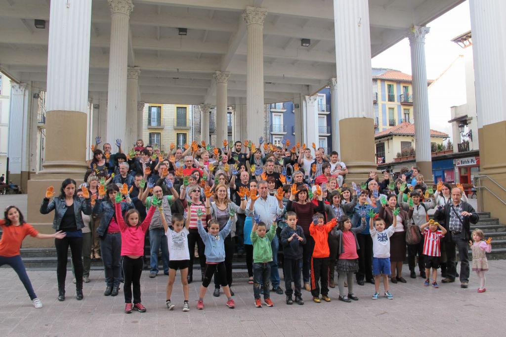 http://youtu.be/hB6xiCVds-M Estatuen esku-hartzea gelditu lelopean dozenaka lagun elkartu ziren atzo Ordizian "nahikoa dela oihukatzeko". Euskararen aurka Espainiako eta Frantziako estatuek hartu dituzten neurriekin amaitzeko eskatu zuten; eskuak kolorez margotuz gelditzeko keinua irudikatu nahi izan zuten.