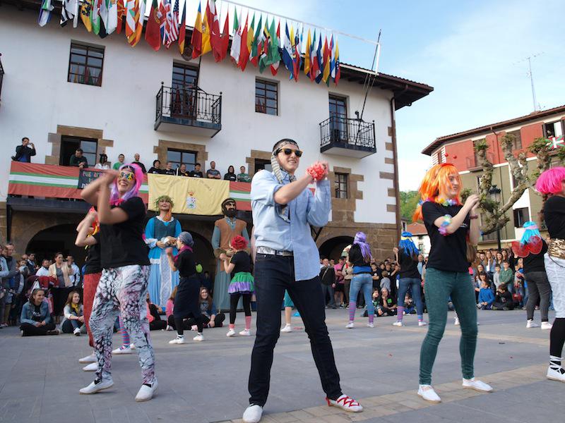 Urtean zehar ezin konta ahala ekitaldi dantzaz hornitzen dituen Oin-Arin taldeak goitik hasi ditu Lazkaoko festak. Ostiralean, txupina bota eta bandoa irakurtzeko ohorea izan zuten. Geroz eta jende gehiago erakartzen duen hasierako ekitaldiari kolore berezia eman zioten, dantzan. Udaletxeko balkoitik eskerrak eman zituen Oin-Arin taldeko zuzendaritzako kide Sara Sanchezek. «Lazkaotar bezala ohorea da. Oso gustura hartu genuen gonbita, gure lana eta gehien bat neska-mutilek eta irakasleek egiten duten lana aitortzea delako. Guretzat poz handia da», zioen, bukatutakoan.
