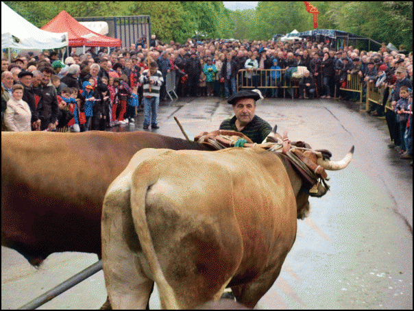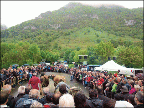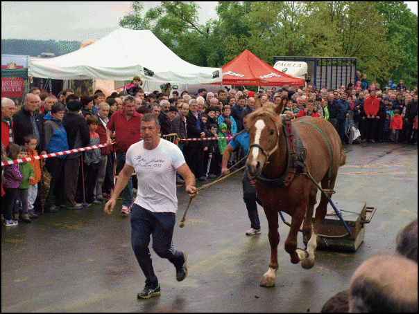 Zaldiaren eta idi parearen arteko tiratze desafioa ere egin da, erakustaldi modura. Imanol Paolla ereñotzuarraren zaldiak irabazi du, 54 plaza osatuta. Roman Elosegi zaldibiarraren idiek 50 plaza osatu dituzte, 20 minutuko lanean.