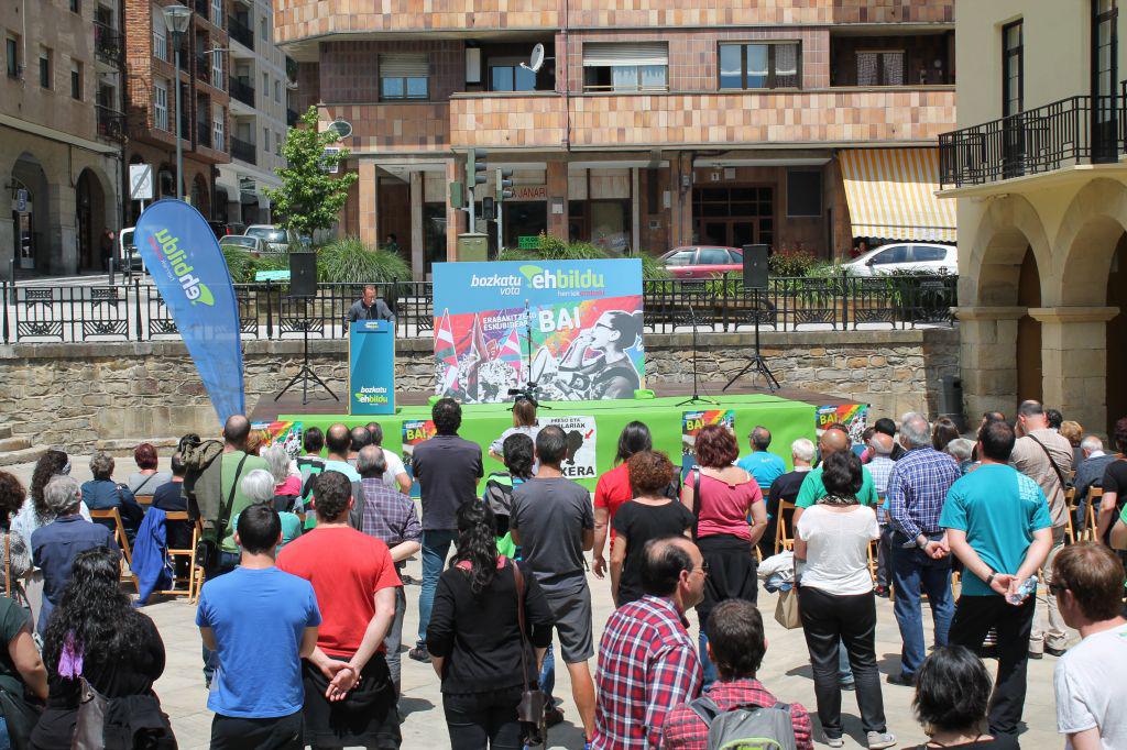 EH Bilduk Ekitaldi nagusia Beasainen egin zuen larunbat eguerdian Maite Ubiria eta Juanjo Agirrezbala izan ziren ekitaldian; EH Bilduk «justizia sozialaren» alde egiteko erronka duela aderazi zuten. Bestalde, alderdiak Europako herrietan sinisten duela esan zuten, eta «proiektu indepententista bakarra» EH Bildurena dela nabarmendu zuten.
