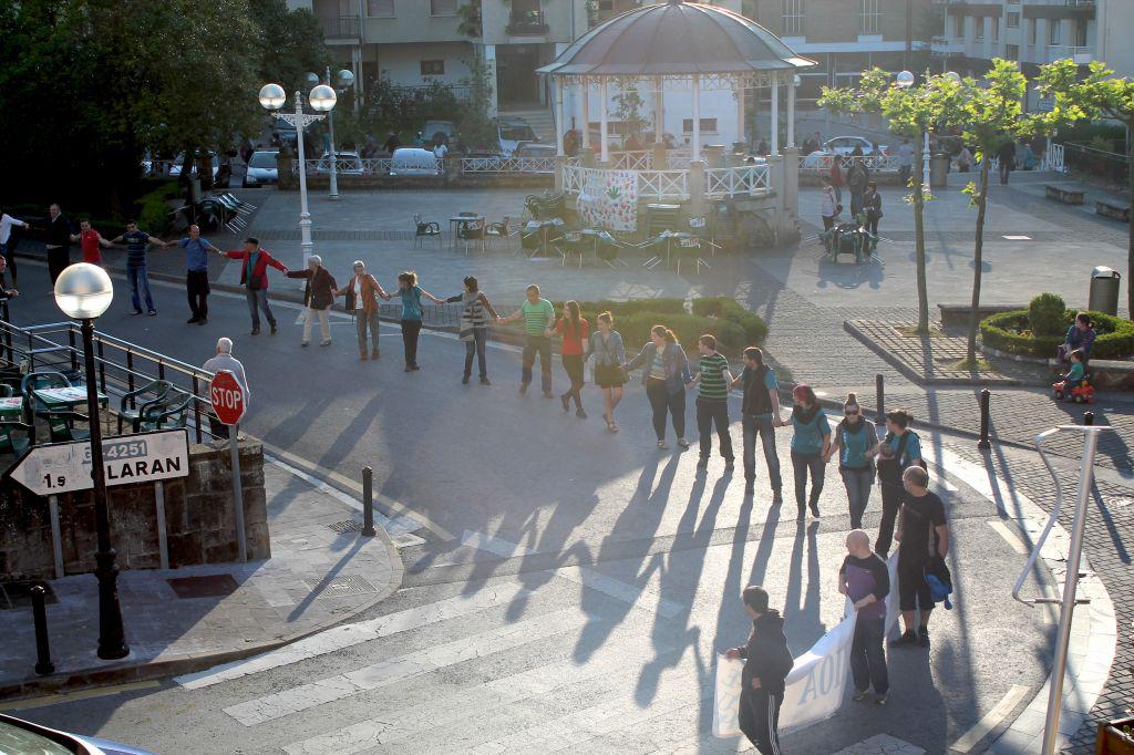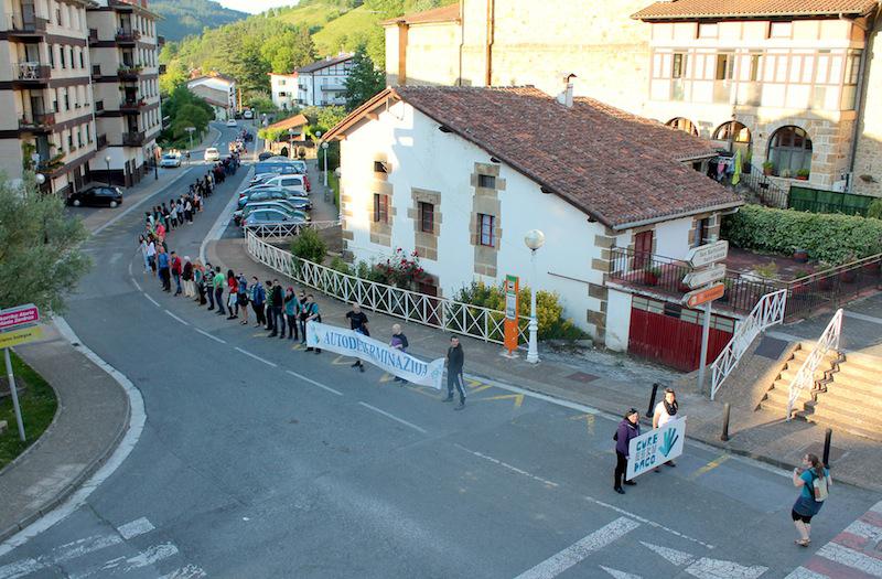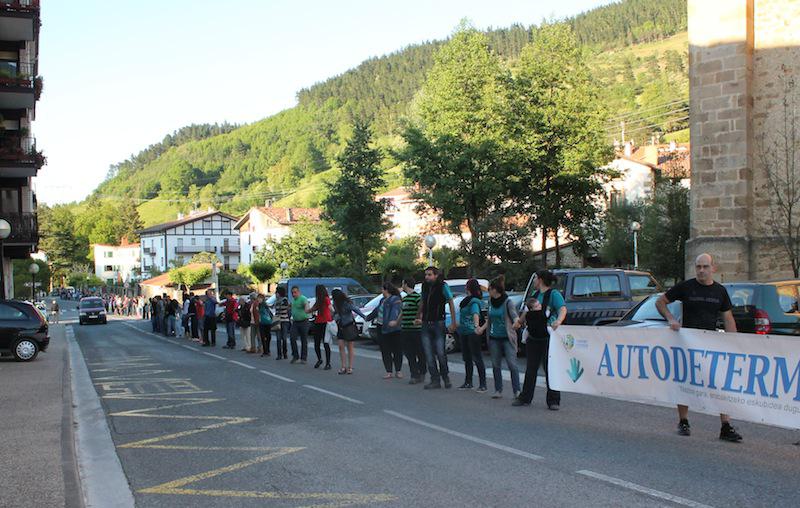 Elkarri eskua emanda, berrehun bat lagunez osatutako gizakatea egin zuten joan den larunbatean Zegaman. Ekainaren 8an Durango eta Iruñea batuko dituen gizakate erraldoiaren atariko, giro bikainean egin zuten aldarrikapen jaia Zegamako Gure Esku Dago taldeak antolatuta.