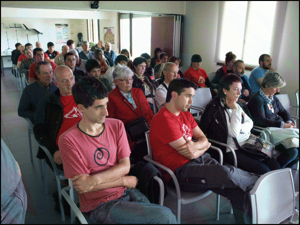 Autopista Elektrikorik Ez taldeko bozeramaile Alberto Friasek azaldu duenez, borroka “bidegurutzean” dago gaur egun. “Guk gure eskuetan dauzkagun gauza guztiak egin ditugu, lege aldetik. Orain zer egin behar dugu herri borondatea onartzeko? Hori da galdera”, azaldu du. Ingurumen arloko adituek, gizarte desobedientziaren esparrukoek eta azpiegitura handien aurka diharduten elkarteetako ordezkariek mahai-inguru batean planteatu dituzte aukerak. Sustrai Eraikuntzako Martin Zelaiak, Carlos Garridun ingurumen gaietan adituak, Arabako Frackin Ez plataformako Mikel Oterok, AHTren aurkako Mugitu elkarteko Gorka Ovejerok eta Lurra elkarteko Alberto Friasek parte hartu dute, 35 bat entzuleren aurrean.