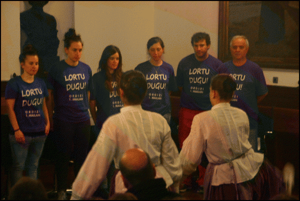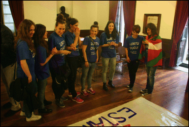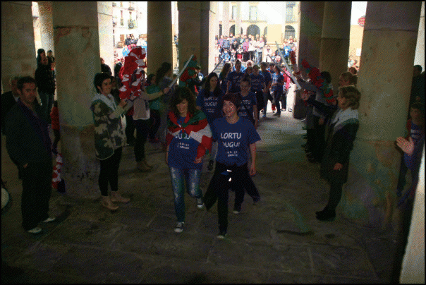 Dantzarien agurraren ondoren, Maite Gonzalez kapitainari herriaren oroigarria eman zion Igor Eguren alkateak. Nesken kirolak sufritzen duen oihartzun ezaz hitz egin zuen Egurenek, eta datorren urtean Lehen Mailan aritu ahal izateko baliabideak lortzeko konpromisoa adierazi zien taldekideei.