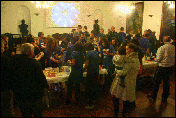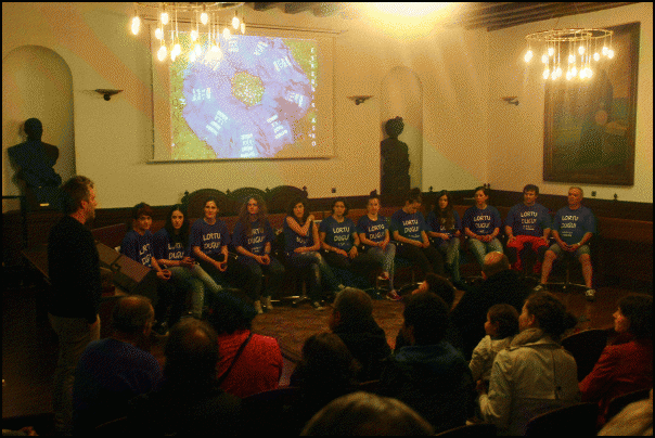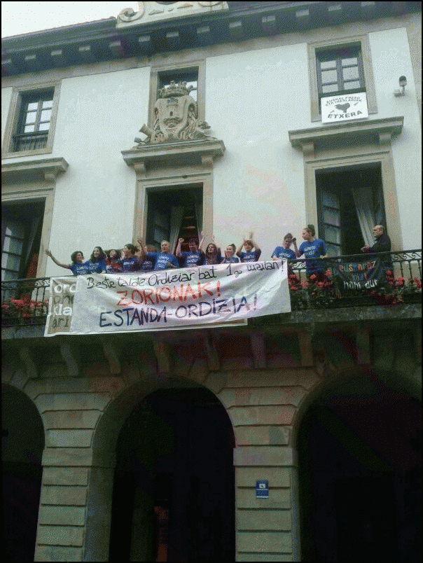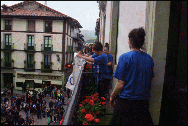Arratsaldeko seiak pasatxo zirenean iritsi ziren Ordiziara, eta lehen besarkada eta argazkien ondoren plazarainoko bidea egin zuten. Dantzarien ohorezko pasiloa zeharkatuta igo ziren udaletxeko pleno aretora. Zain zituzten udal korporazioa osatzen duten alderdietako ordezkariak, klubetakoak, aldundikoak zein federaziokoak. Guztiak agurtu ondoren, balkoira irten ziren “Beste talde ordiziar bat 1go mailan. Zorionak Estanda Ordizia” zioen pankarta zintzilikatzeko.
