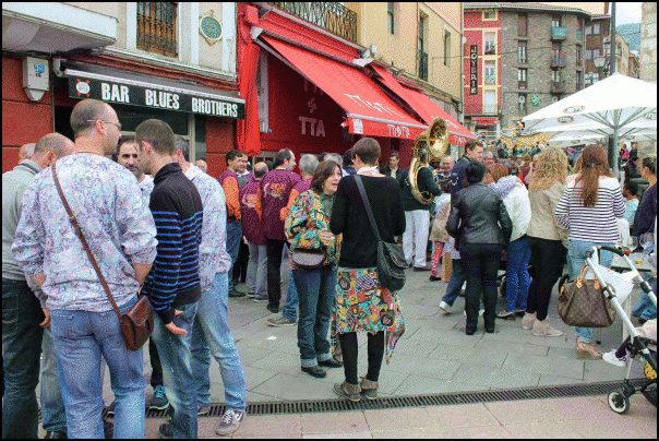Gero, txaranga lagun hartuta, bazkal-aurreko poteoa hasi dute, tabernaz-taberna. Kaleak lepo bete dira festa gogoz zeuden beasaindarrez. Bost Baietz saioa grabatzera ere etorri da Julian Iantzi. Goizean erromeria egin dute Loinazko San Martin basilikan.