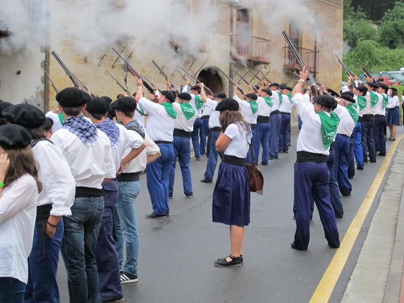 http://youtu.be/D2kH__q30fc Gogoz saiatu den arren, euriak ez du Legazpiko armen alardea zapuztea lortu. Konpainiak Urtatza auzoan elkartu dira eta ondoren herriko kaleak zeharkatu dituzte. Bikuña jauregian geldiunea egin dute eta ondoren parte hartzaileen zenbaketa egin dute Euskal Herria plazan. Bertan, dena prest da sua pizteko. 22:20ean txalapartarien deia izango da eta ondoren sua piztuko dute.