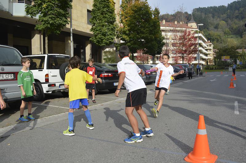 Eskola umeen hirugarren errelebo lasterketa egin dute goizean Beasainen