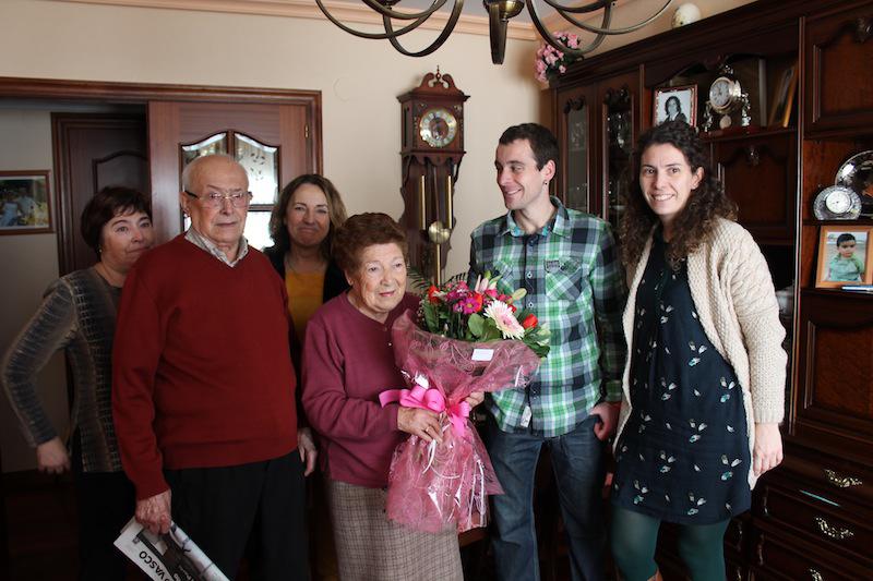 Ehun urte bete ditu gaur Burgosen (Espainia) jaio eta 60ko hamarkadatik Beasainen bizi den Emiliana Garciak. Zutik eta irribartsu hartu ditu gaur goizean alkatea eta zinegotzia bere etxean, zoriontzera joan zitzaizkionean. Hainbeste urte betetzeko sekretua “den-denetik eta gogoak eman ahala jatea” eta “jenio bizia izatea” direla diote bere alaba-hilobek. Berari funtzionatu dio behintzat.
