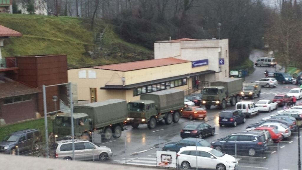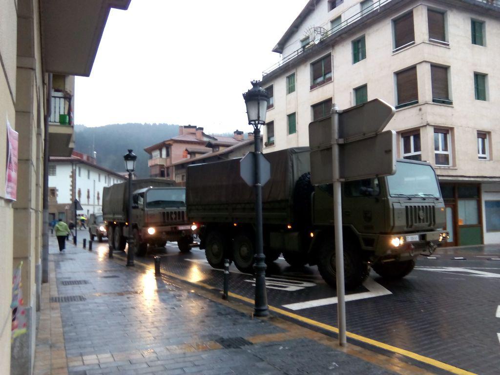 - Militar espainiarren ibilgailuak Lazkaoko kalean./Aimar Maiz