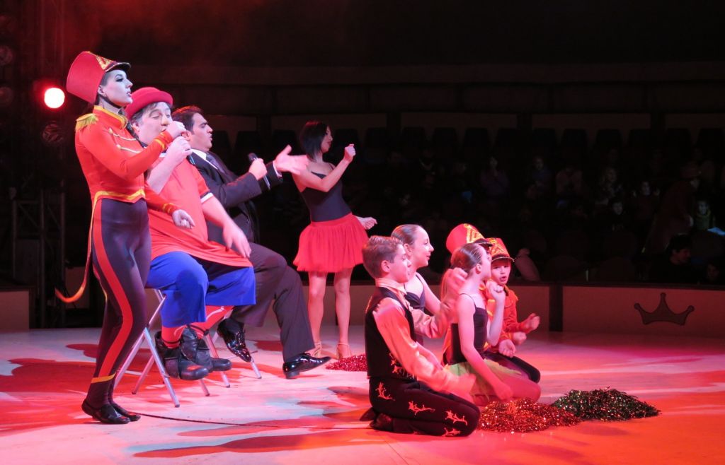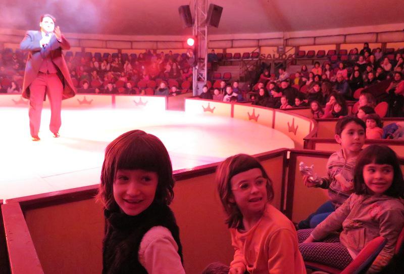 Karparen sarreran, frak gorriz jantzitako lau lagun, familiei ongi etorria emateko eta non eseri behar ziren esateko. 19:00etan puntuan hasi zen ikuskizuna. Pistara irteten lehenak Aragon familia ospetsuko pailazoak izan ziren. Ondoren, kontortsionistak, malabaristak, trapezistak, pailazo gehiago…