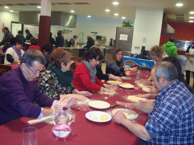 Goiztirik jakinarazi dutenez, “talo batzuk itxura dotoreagoa zuten beste batzuek baino”, baina horrekin gehiago kezkatu gabe, taloa jakiren batekin bete eta solasean eta “giro goxoan” aritu ziren taloak nola egiten diren ikasten.